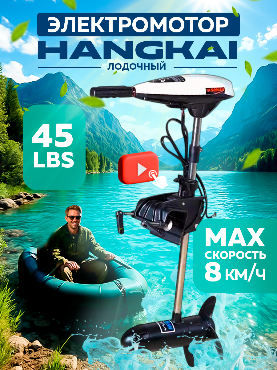Мотор лодочный HANGKAI электромотор 45 LBS, тяга 22 кг, мощность 552 ВТ интересное: