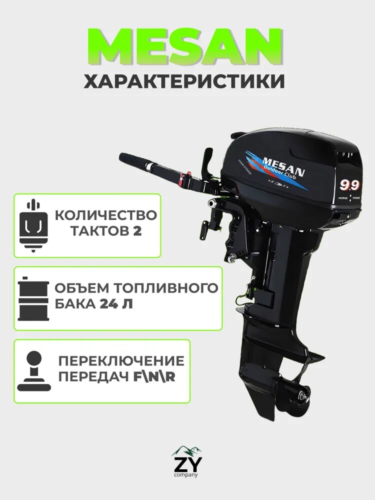 Мотор лодочный Mesan 9.9 (30) Л. С. 2-х тактный, бензиновый, подвесной(Румпельное управление-ТЕРМОСТАТ-Возможность подключения Дистанционно