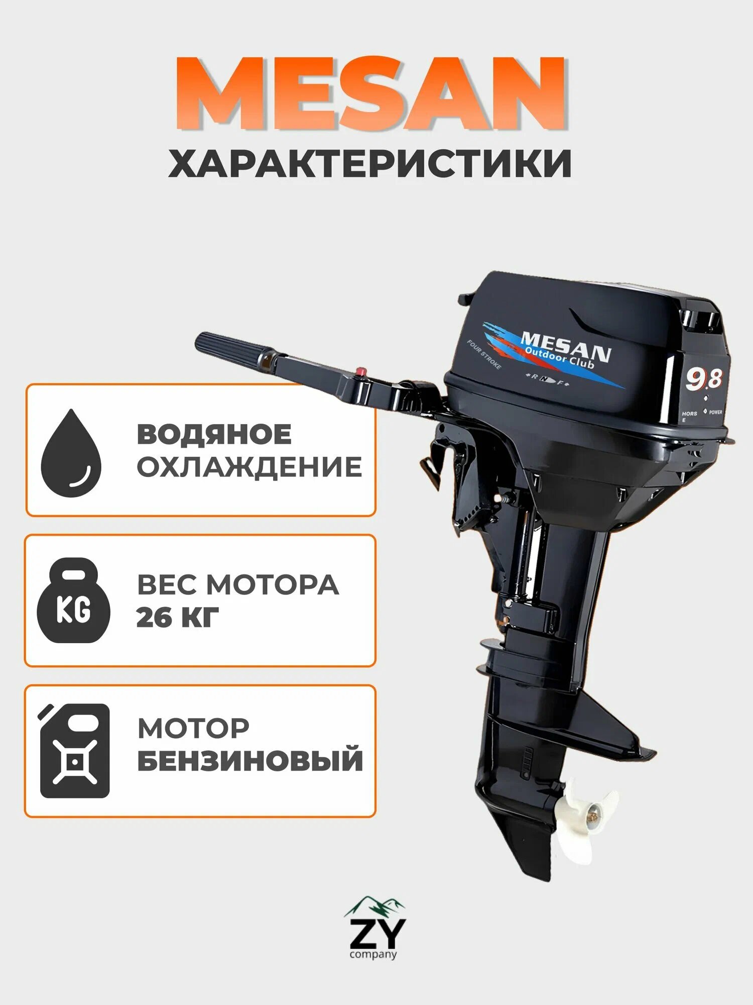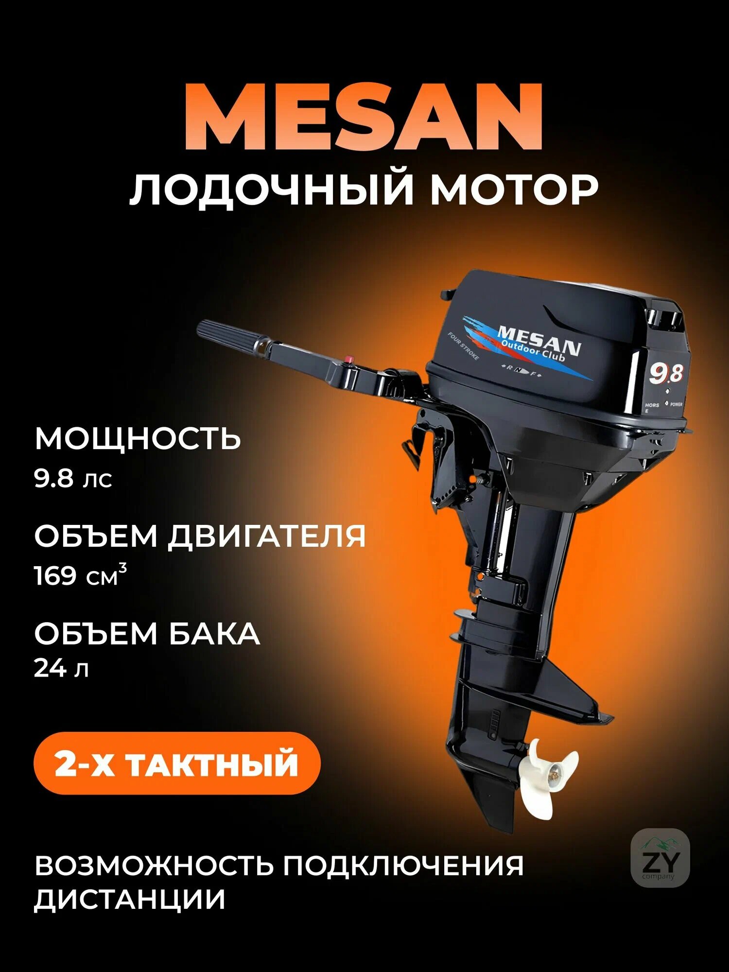 Мотор лодочный Mesan 9.9 (30) Л. С. 2-х тактный, бензиновый, подвесной(Румпельное управление-ТЕРМОСТАТ-Возможность подключения Дистанционно