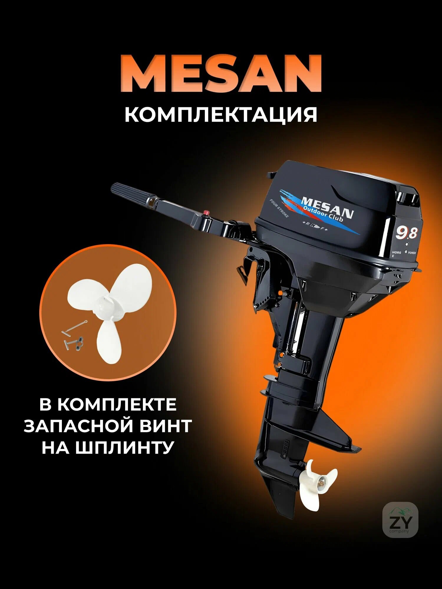 Лодочный мотор Mesan 9.8, 2-тактный, 2 цилиндра, мощность 9.8 л. с, черный интересное: