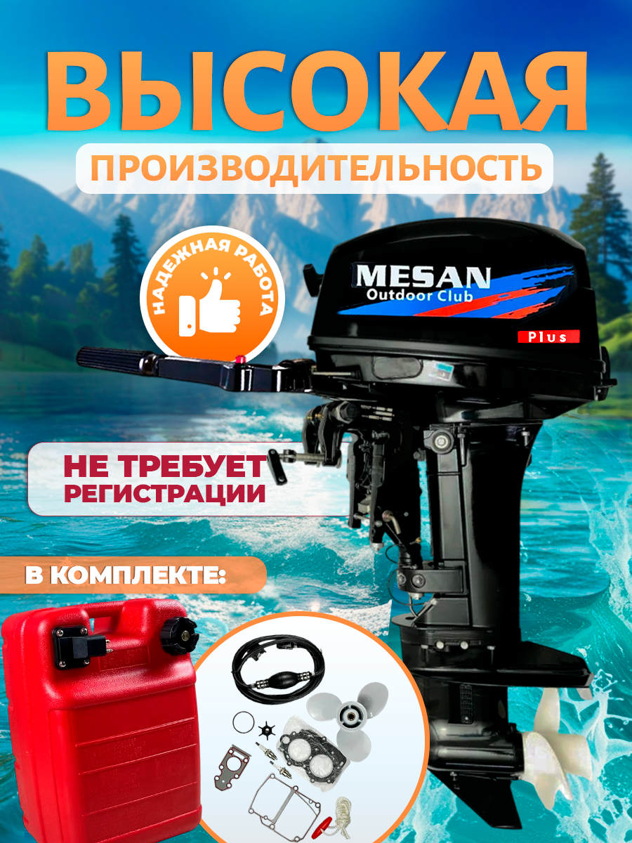 Мотор лодочный MESAN 2-х тактный 9.9 лс PLUS, 14.7 кВт, 326 см куб. интересное: