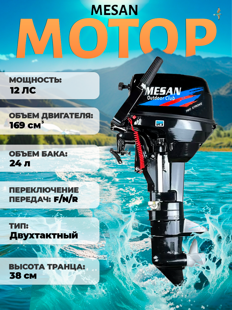 Мотор лодочный MESAN 2-х тактный 9.8 лс, 8.8 кВт, 169 см куб. интересное: