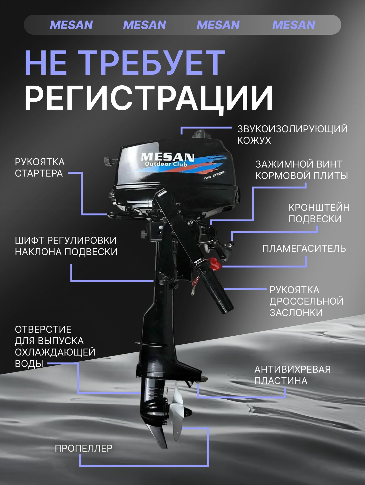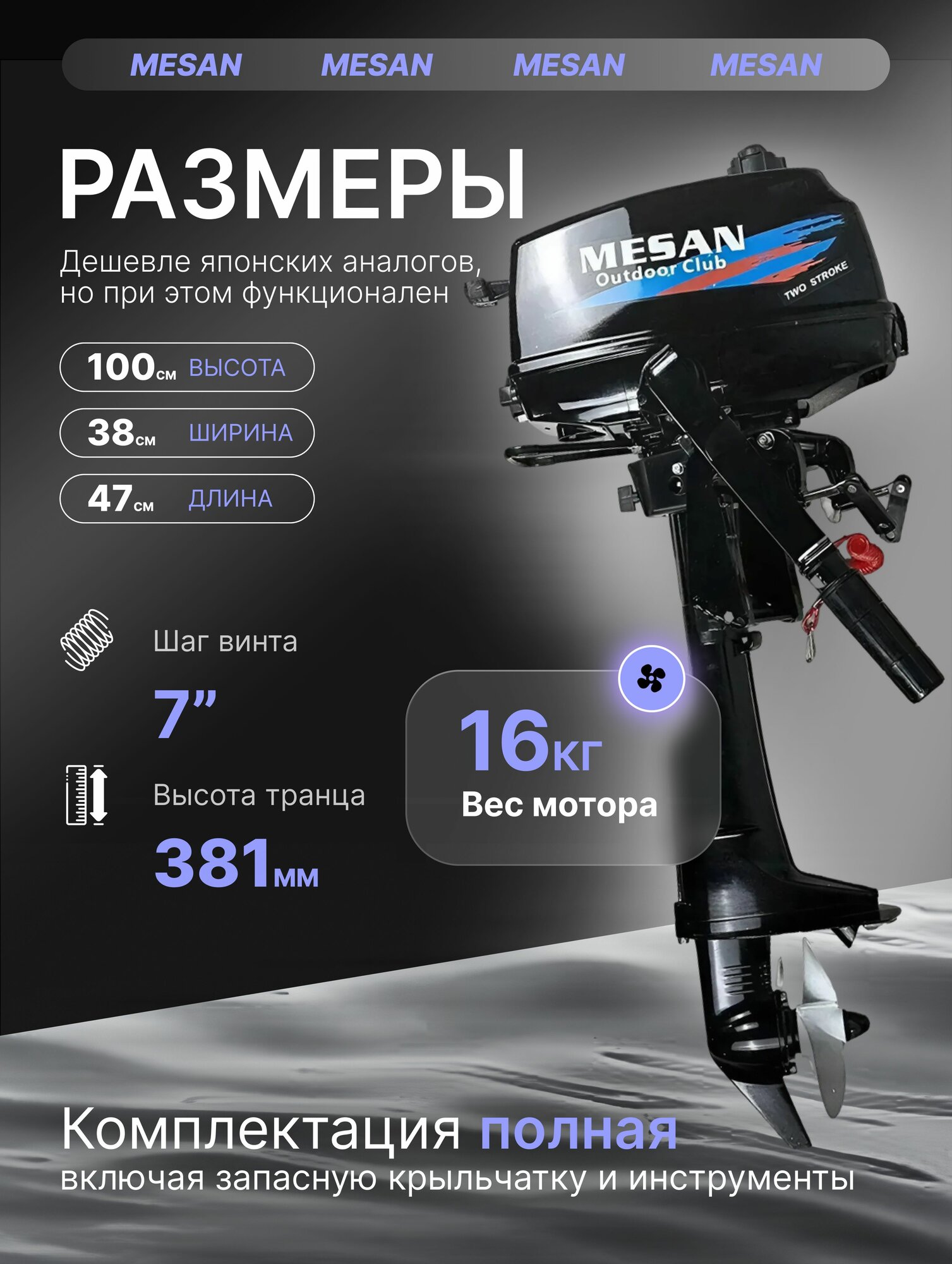 Лодочный мотор Mesan 4,0 л. с. ,2-х тактный , бензиновый интересное: