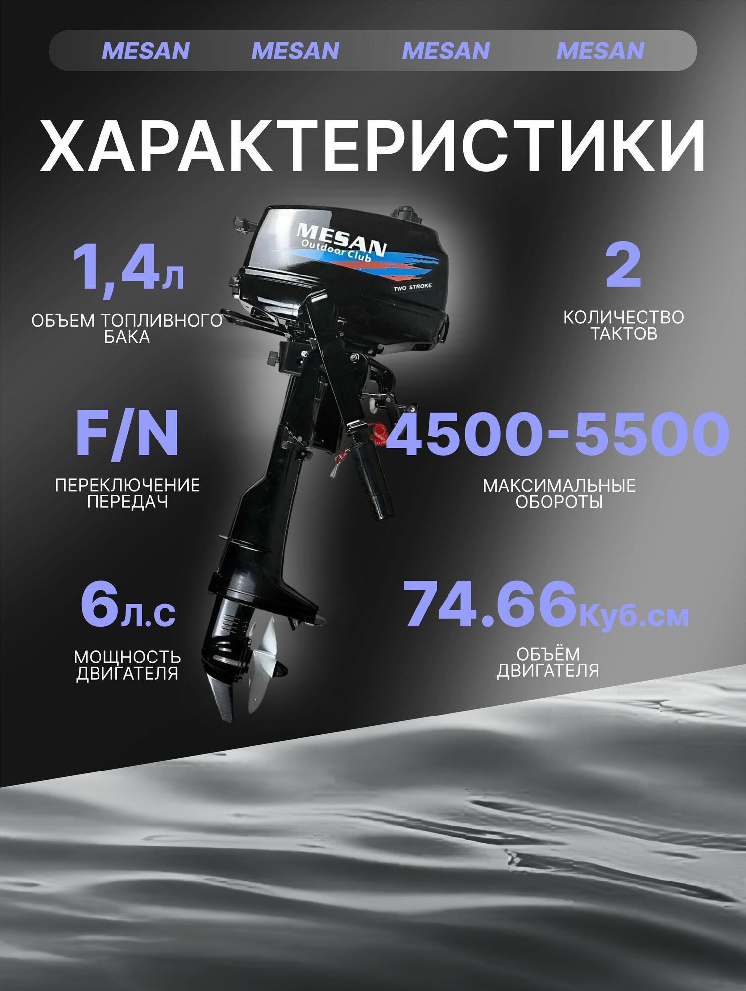 Лодочный мотор Mesan 6.0 л. с,2-х тактный, бензиновый