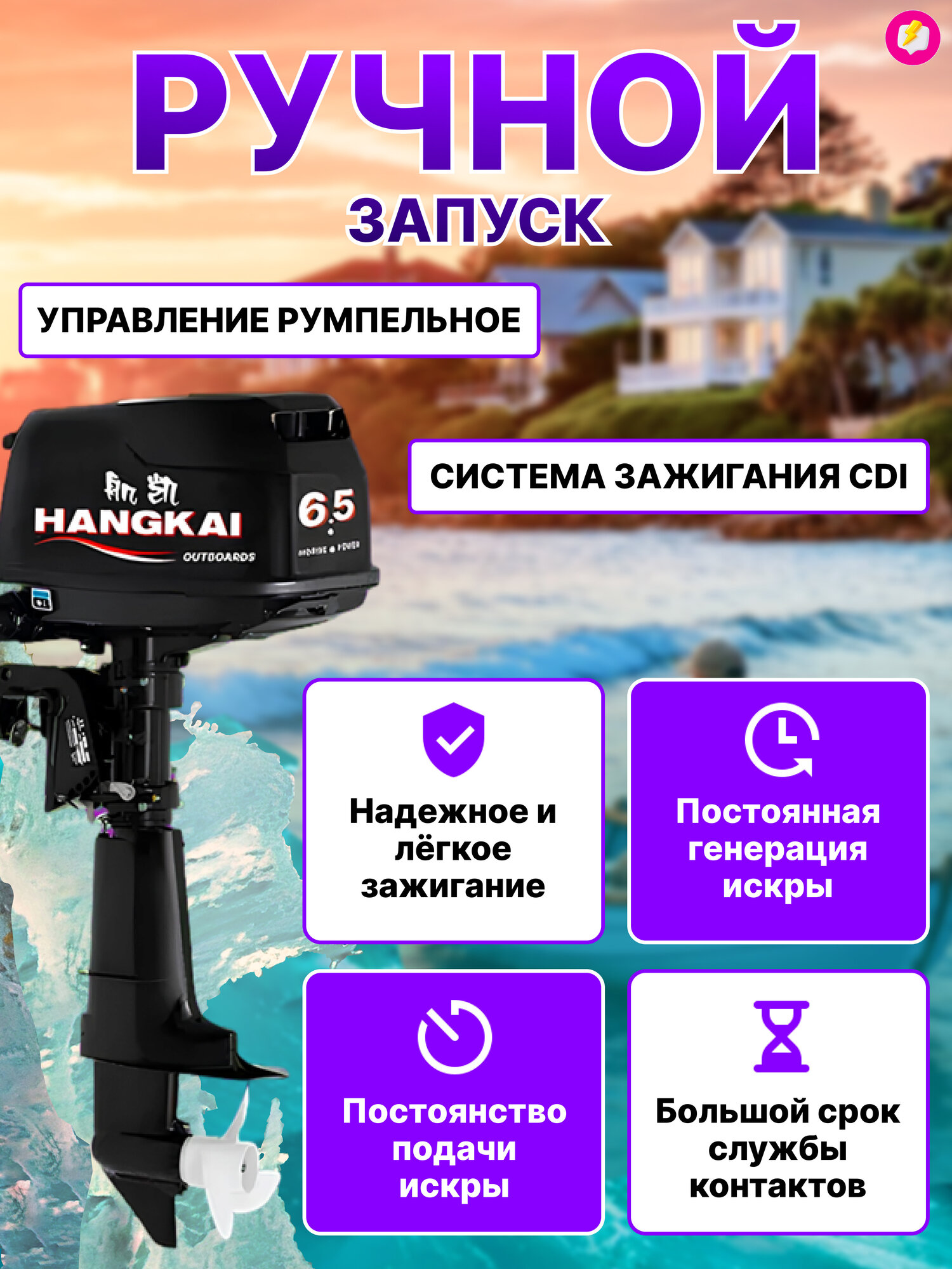 Лодочный мотор Hangkai 6.5 л. с. 2-тактный, бензиновый интересное: