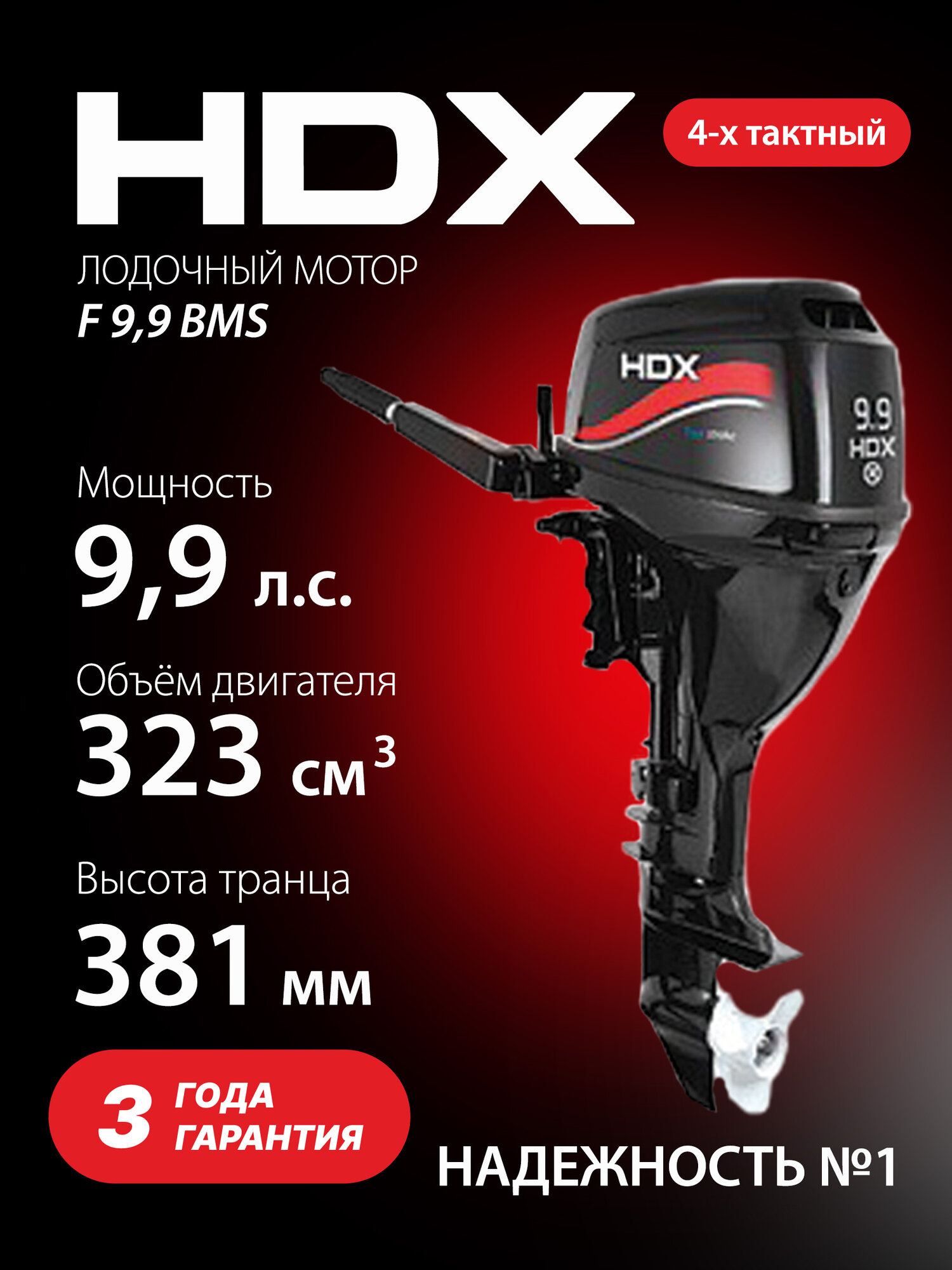 Лодочный мотор HDX F9.9BM, бензиновый, 4 такта, управление румпелем интересное: