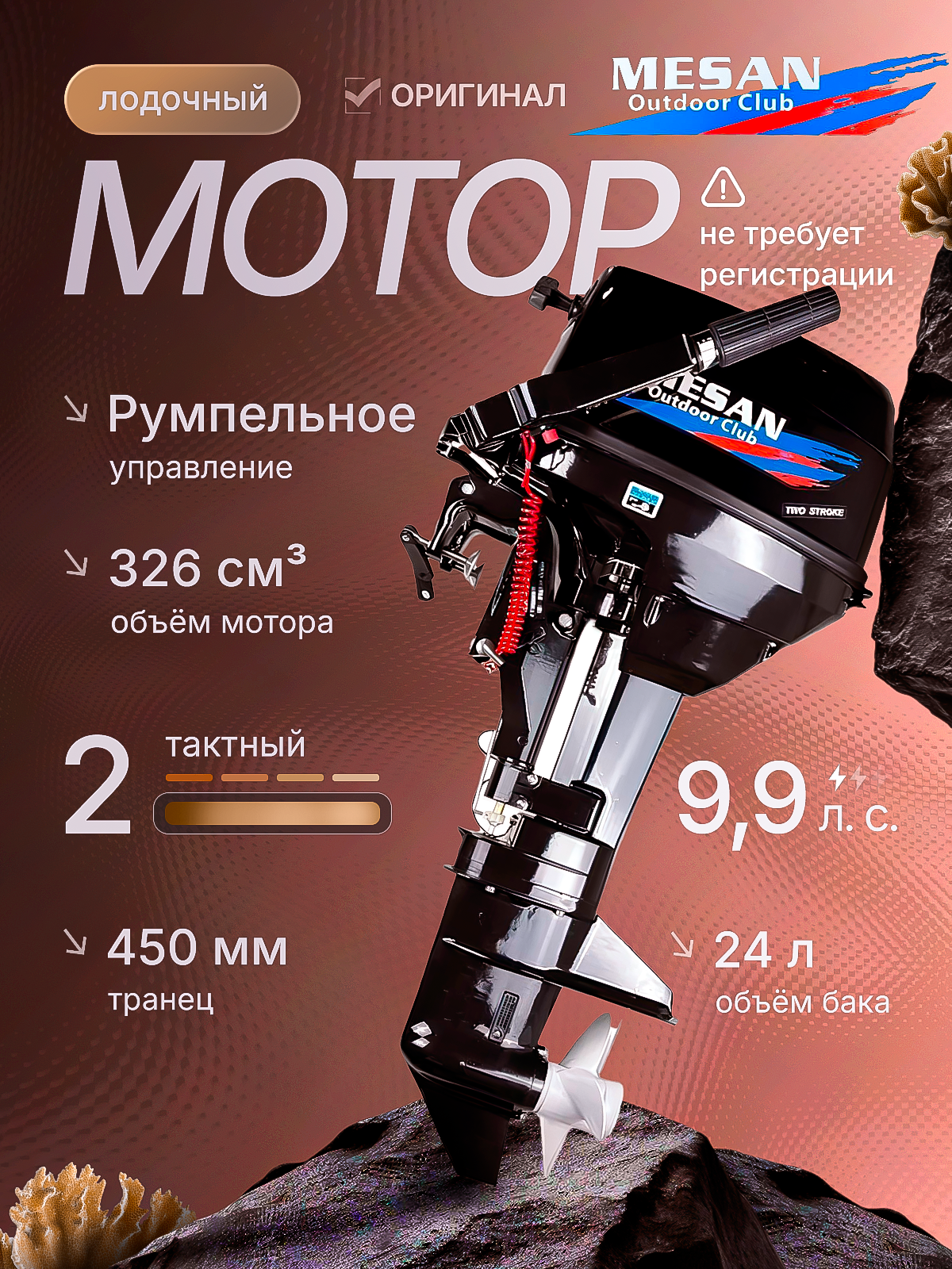 Мотор лодочный Mesan, двухтактный, 9,9л. с, 2 цилиндра, чёрный, ручной запуск интересное: