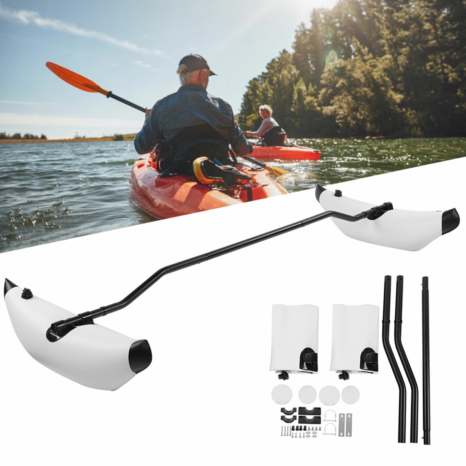 Купить Надувной стабилизатор для каяка PVC, комплект для каноэ-аутриггера, плавающий балансирующий аксессуар, белый, легкий и переносимый