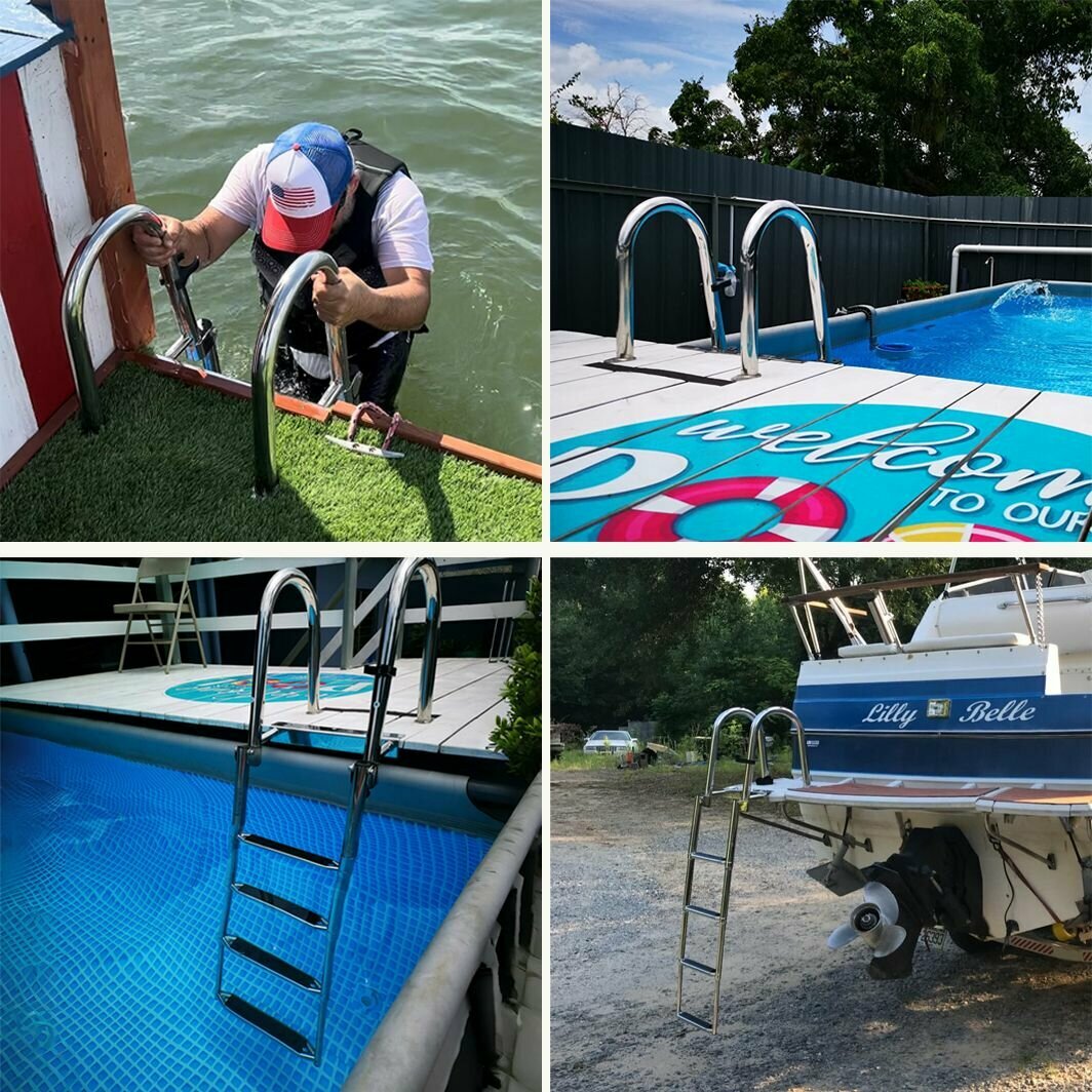 Трап телескопический складной 4 ступени, нержавеющая сталь / Лестница складная для лодки, катера, яхты интересное: