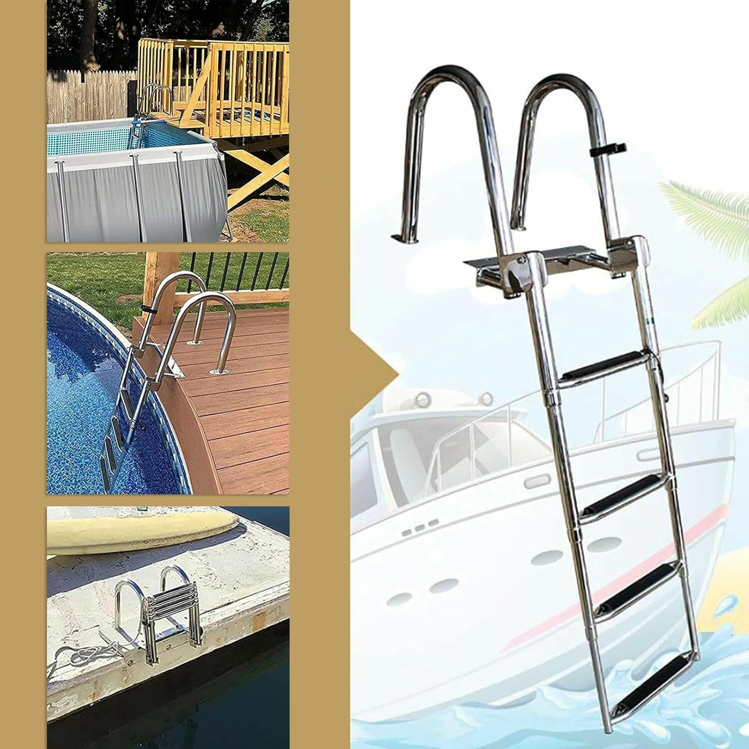 Купить Трап телескопический складной 4 ступени, нержавеющая сталь / Лестница складная для лодки, катера, яхты