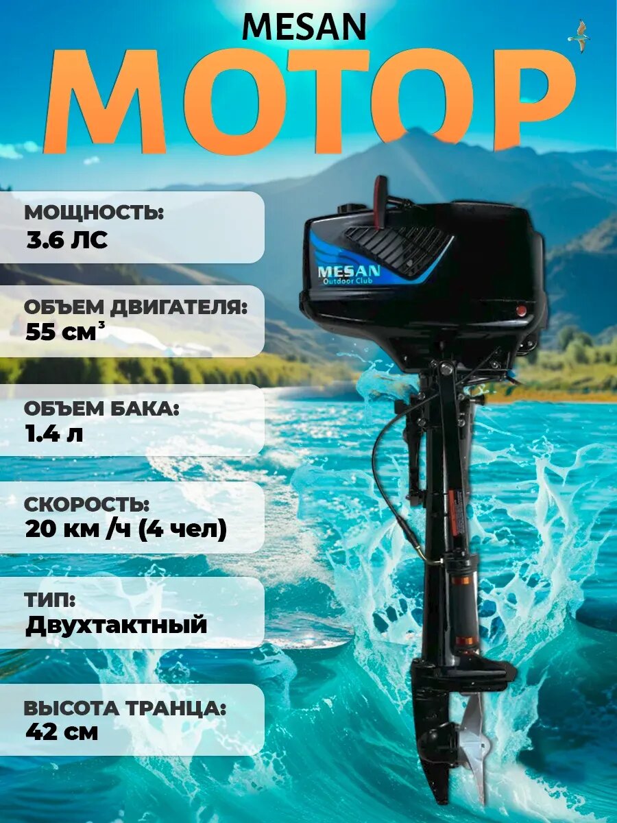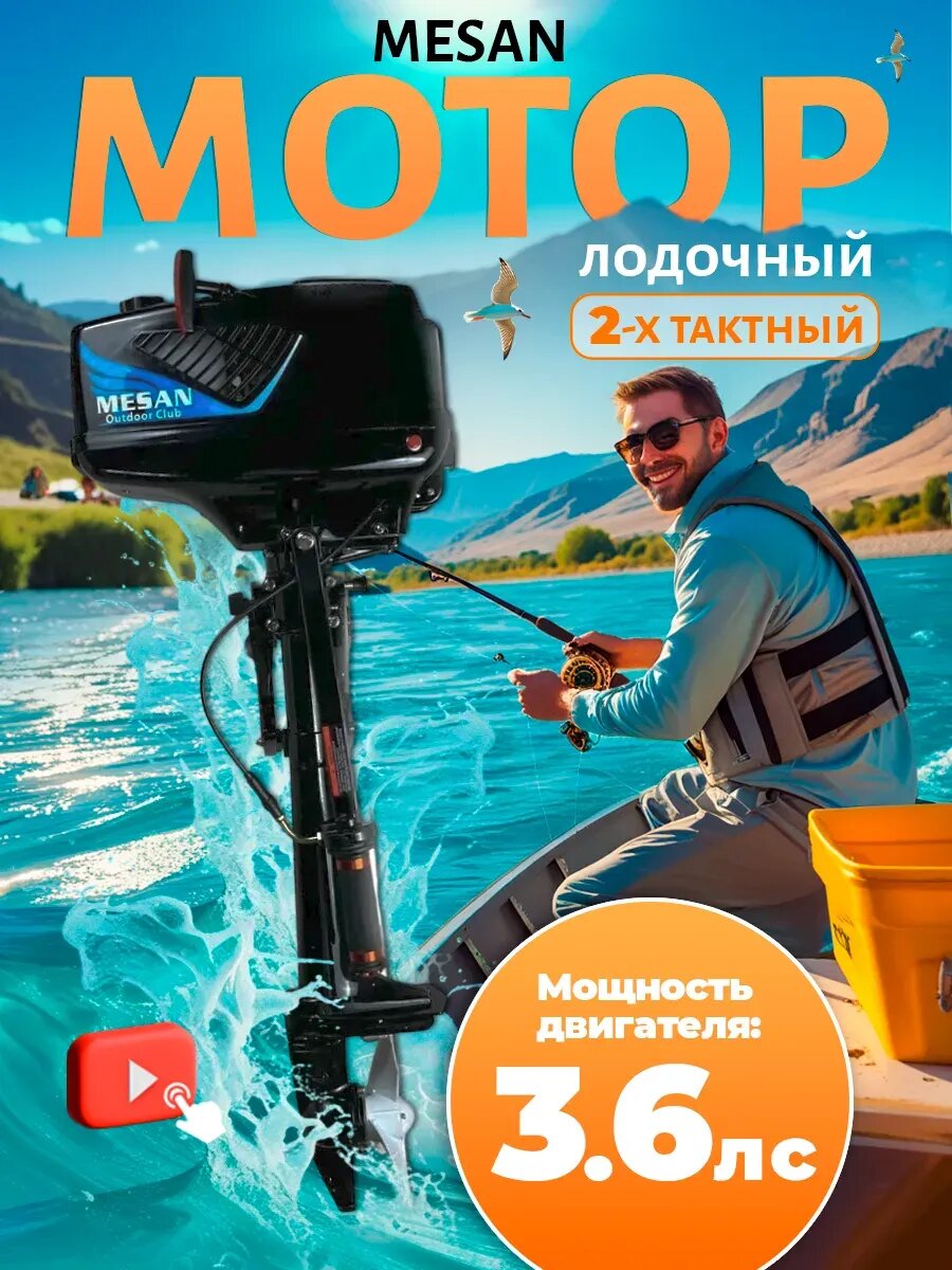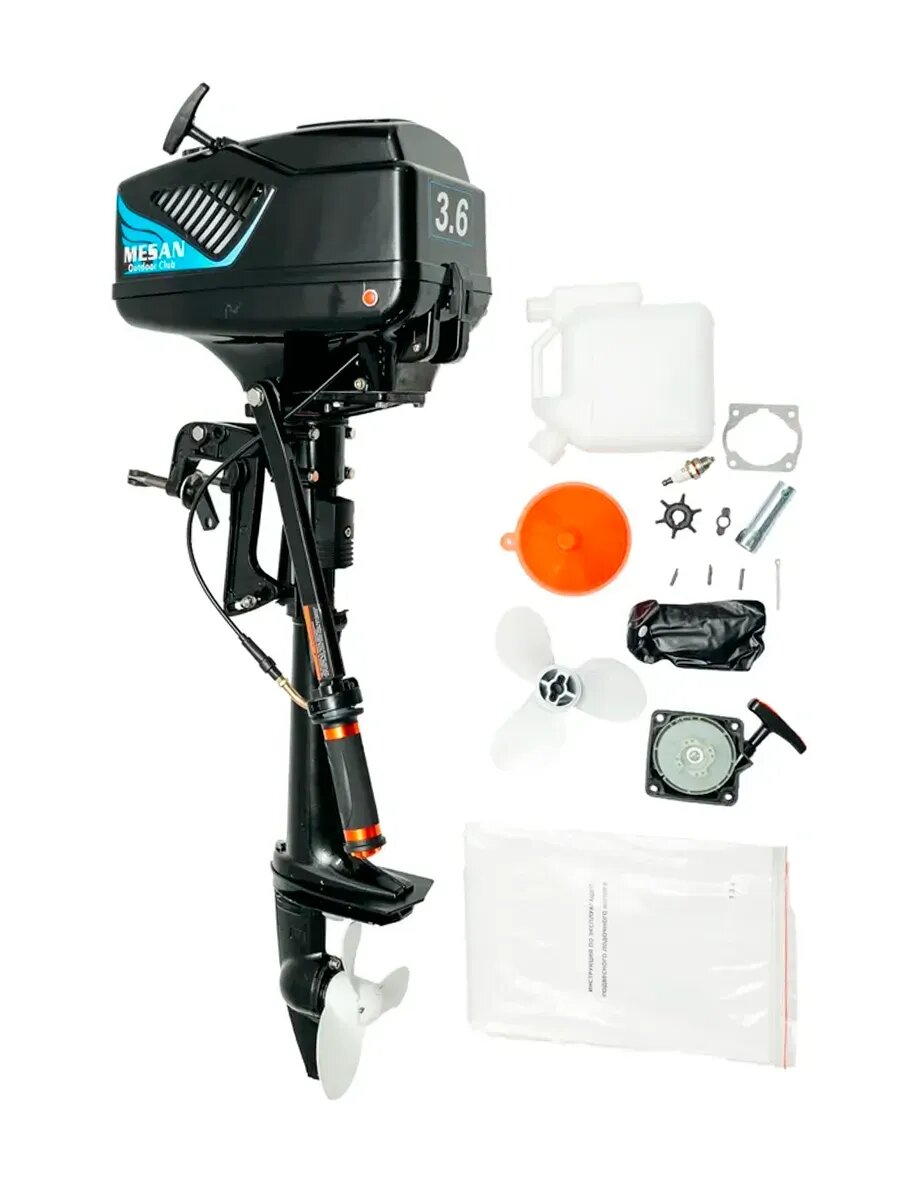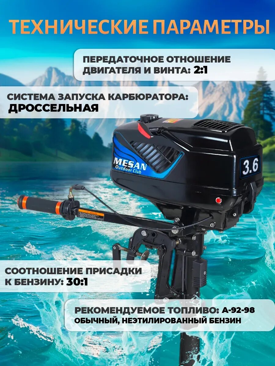 Мотор лодочный MESAN, 2-тактный, 3.6 л/с, 2.6 кВт, легкий вес 9,7кг, черный интересное: