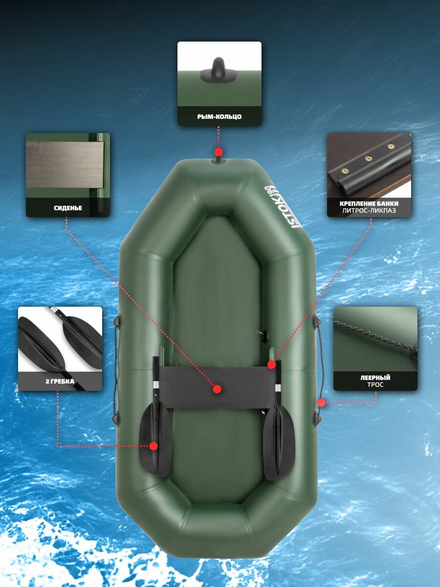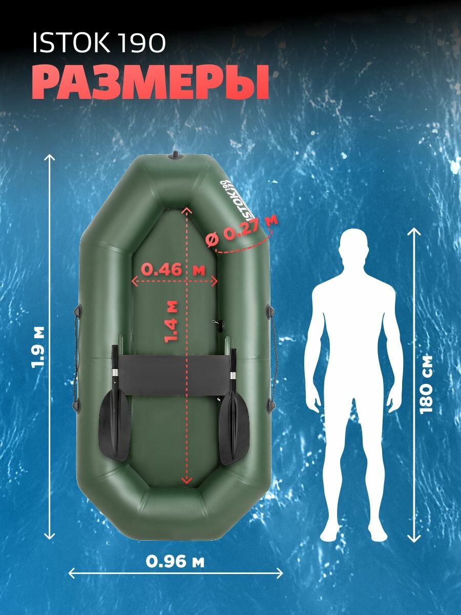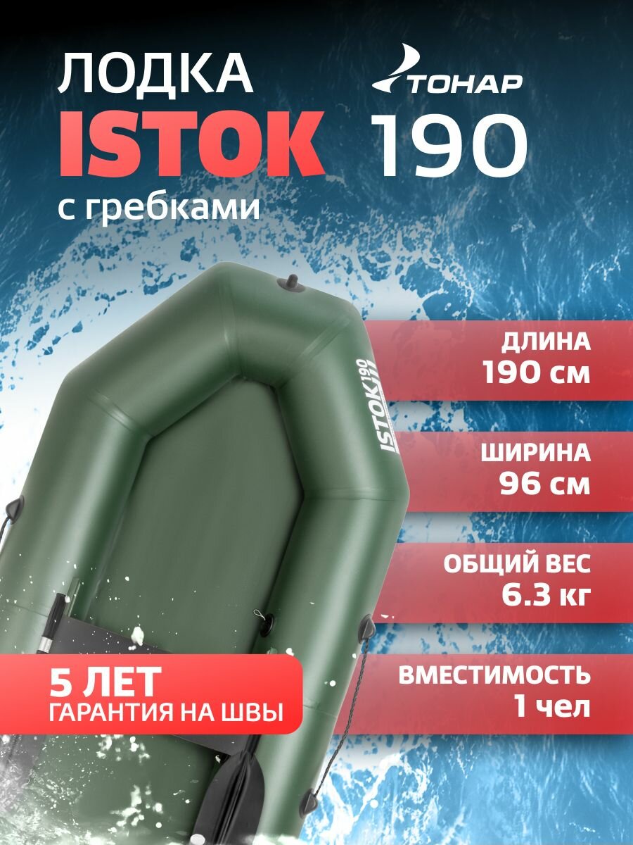 Лодка ПВХ надувная для рыбалки ISTOK 190 с гребками, зеленый Тонар интересное:
