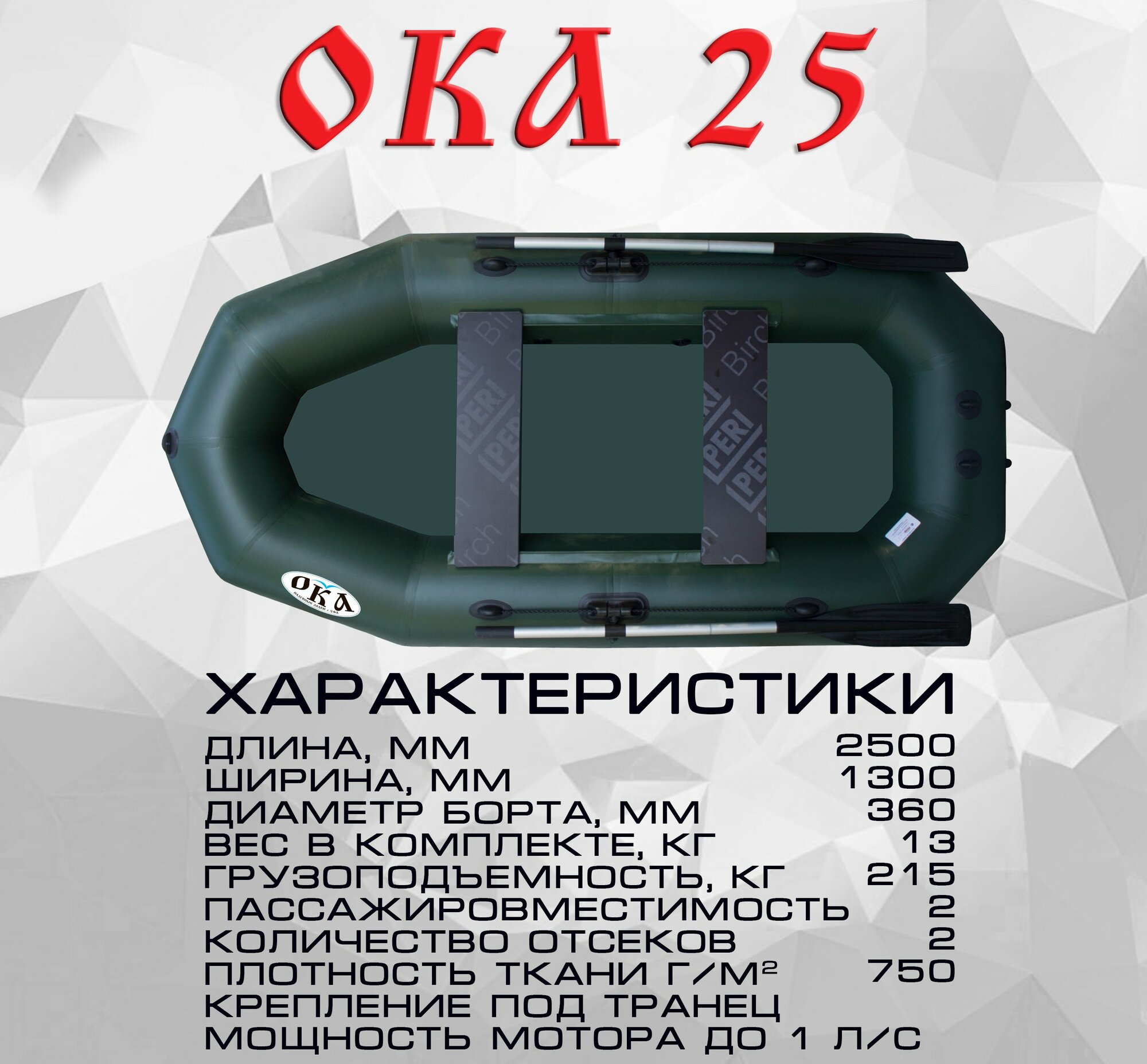 Надувная лодка пвх Ока 25 (250 см) гребная под мотор, цвет зелёный, двухместная интересное: