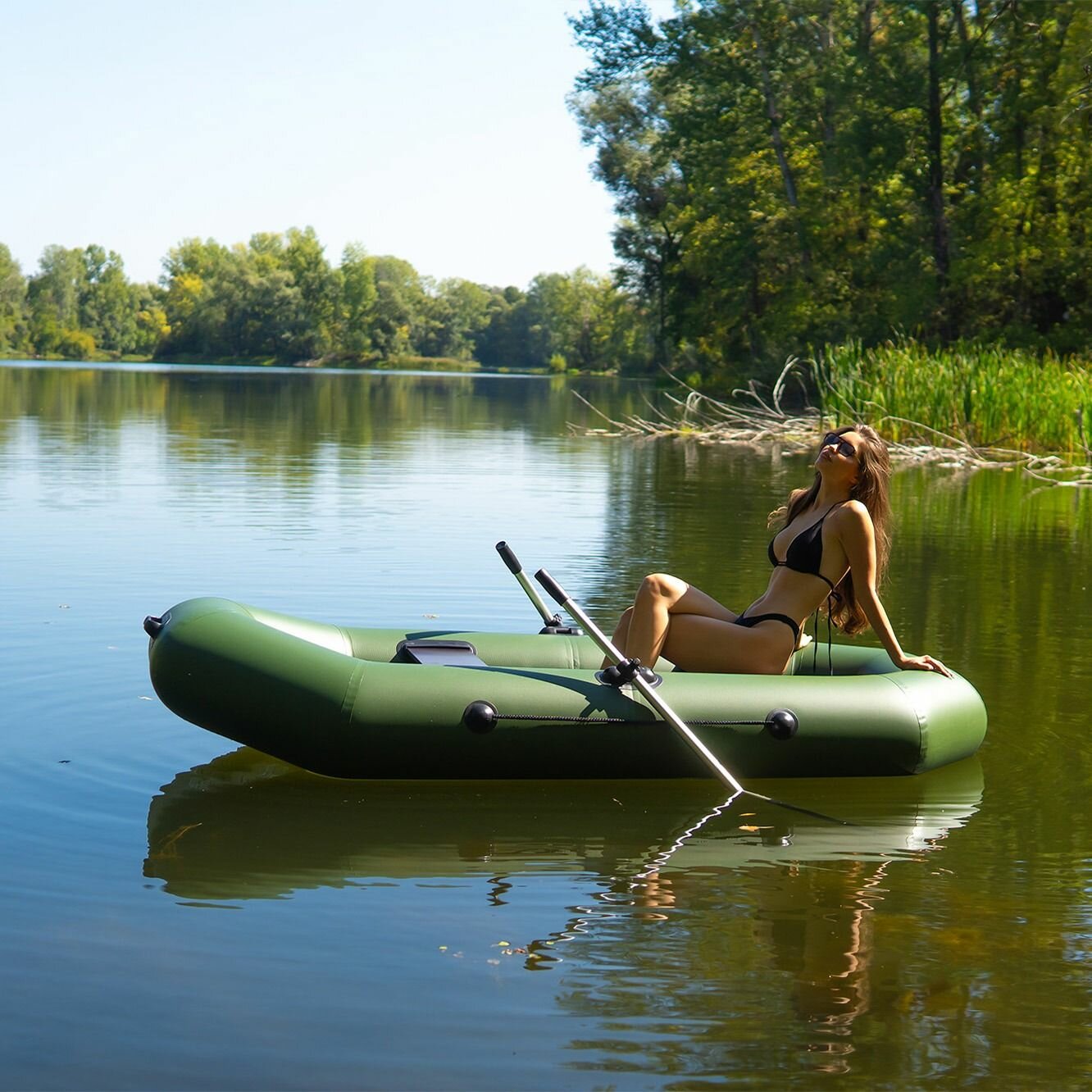 Лодка надувная ПВХ для рыбалки гребная двухместная калибро 260, зеленый интересное: