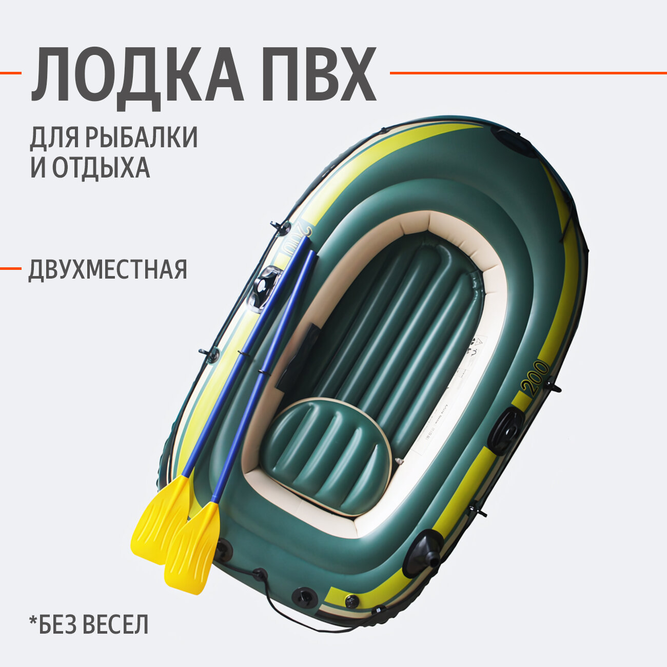 Купить Лодка надувная двухместная, утолщенный ПВХ, для рыбалки и отдыха, гребная, цвет зеленый