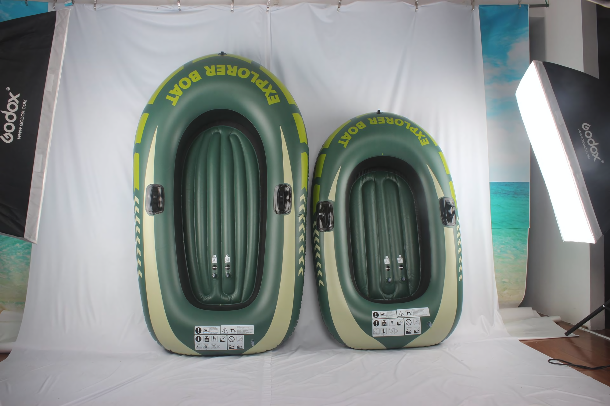 Лодка надувная двухместная, утолщенный ПВХ, для рыбалки и отдыха, гребная, цвет зеленый