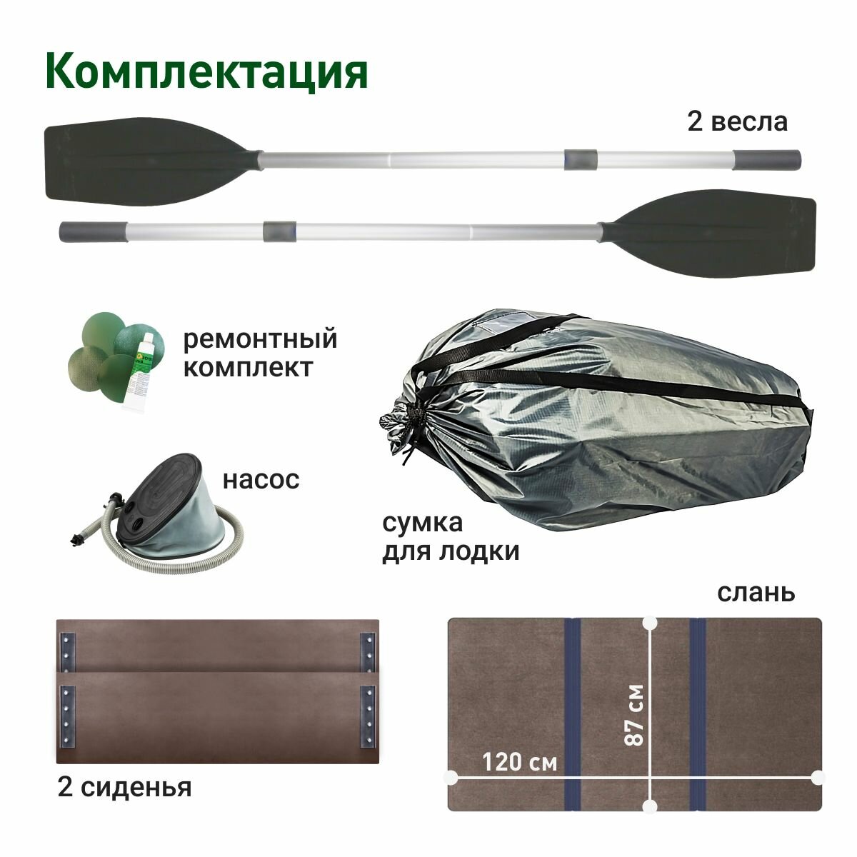 Лодка надувная ПВХ для рыбалки гребная двухместная OZERUS 280, крепления под транец для мотора, зеленая