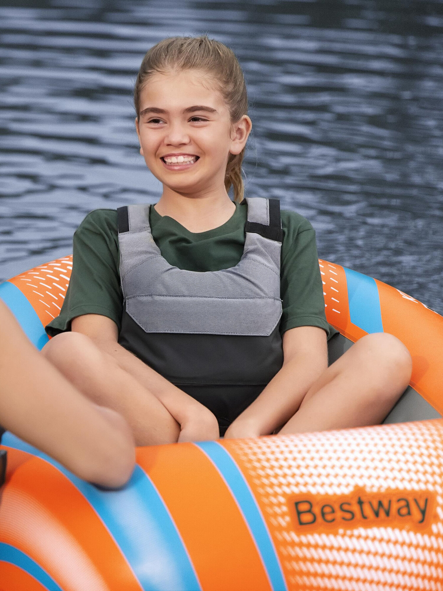 Каноэ надувное высокого давления на 4 человек (2 взрослых + 2 детей) X500 ITIWIT Х Decathlon Серо-Зелёный/Зеленый/Алый