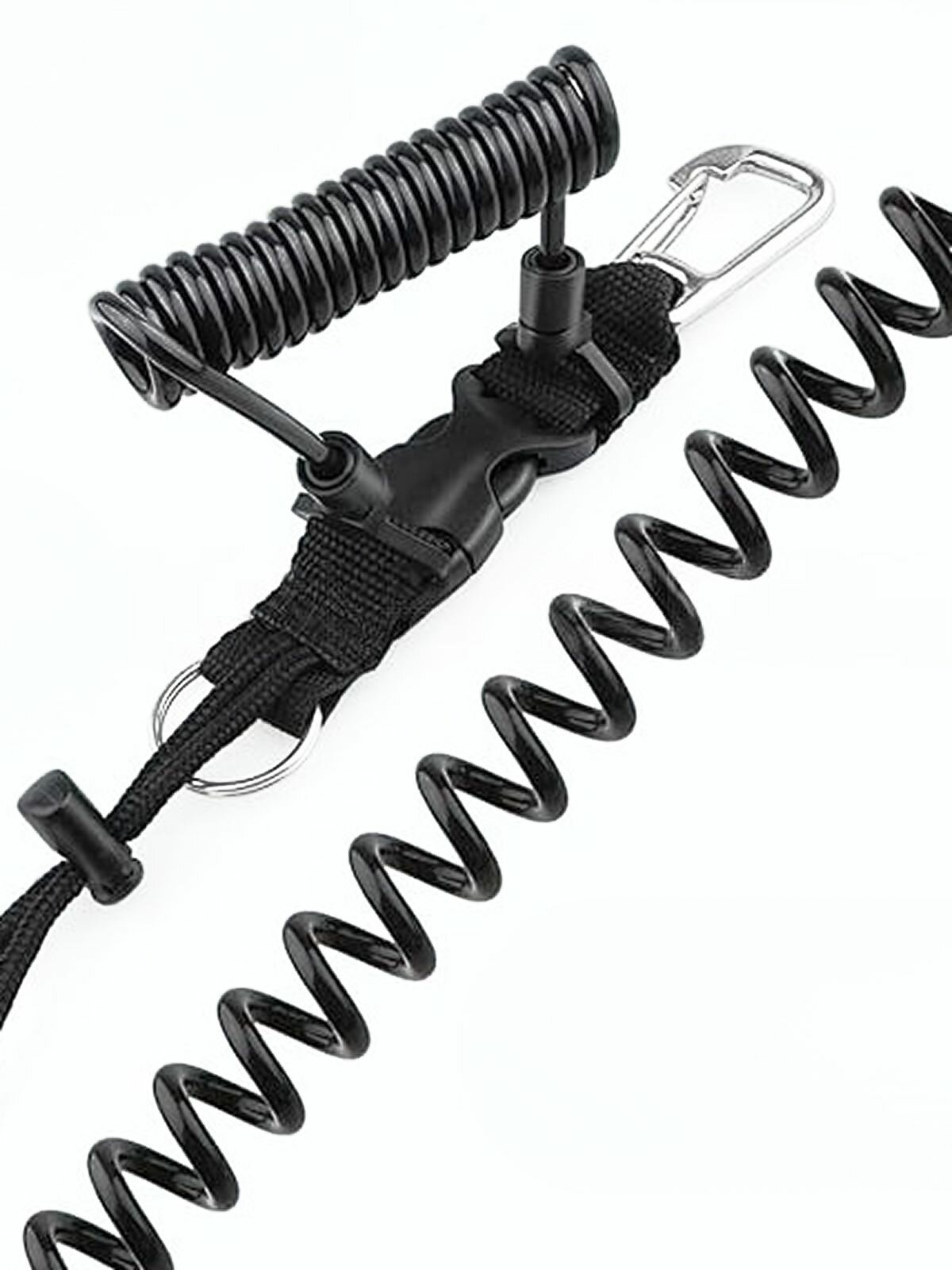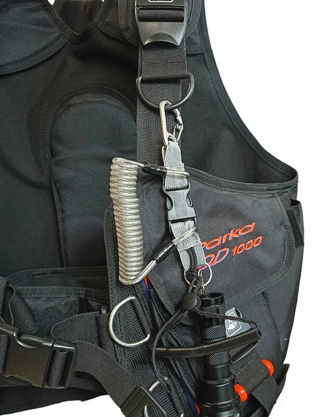 Пружинный ретрактор для дайвинга с застежкой фастекс, стальными карабинном и кольцом 7.5 х 31 см интересное: