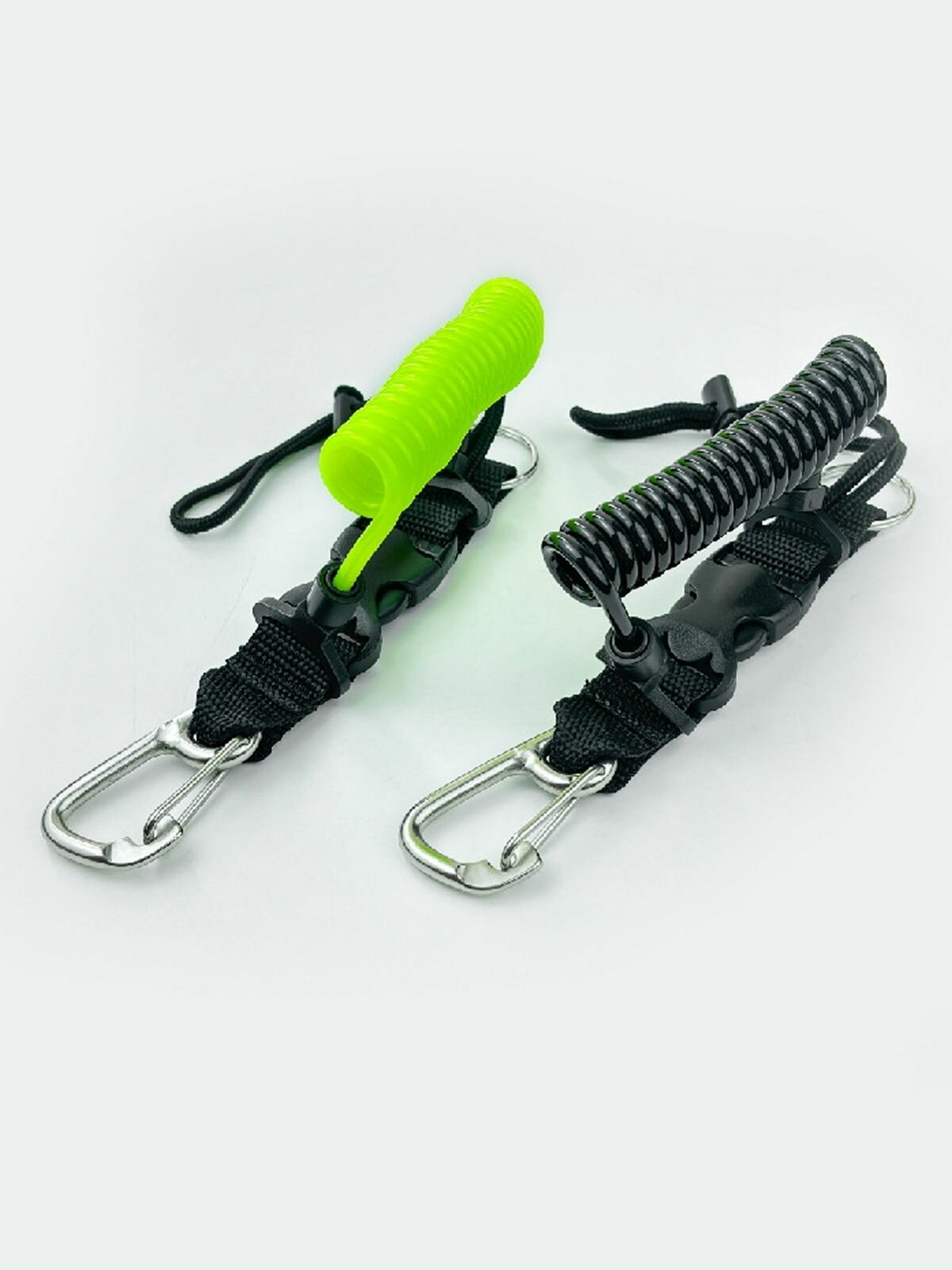 Купить Пружинный ретрактор для дайвинга с застежкой фастекс, стальными карабинном и кольцом 7.5 х 31 см
