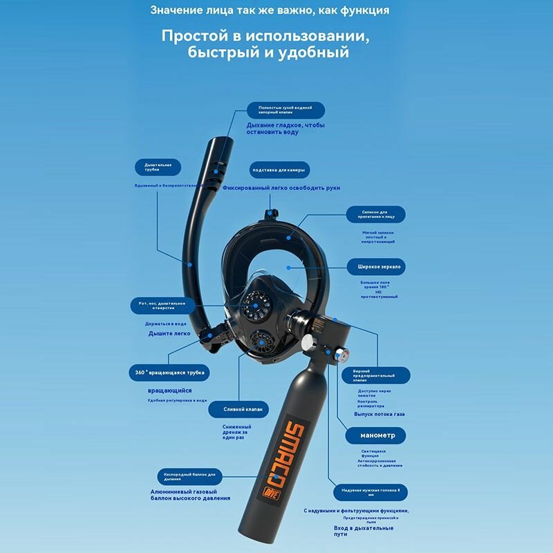 Мини баллон для дайвинга с маской, 0,5 литра Портативный мини баллон для дайвинга a интересное: