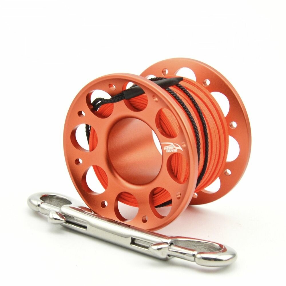 Купить Катушка-шпуля алюминиевая 15м с карабином оранж
