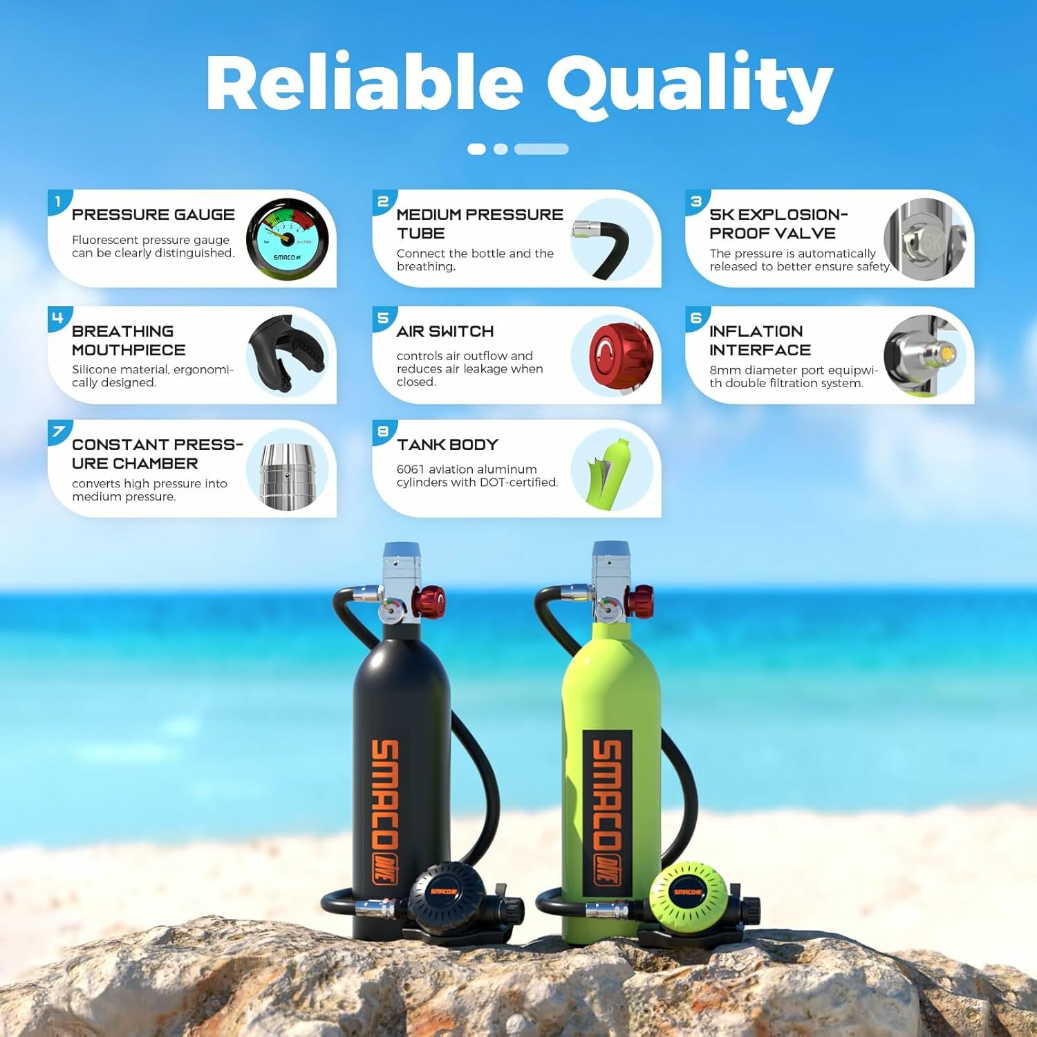 Купить Баллон для дайвинга SMACO S400 1 л, многоразовое использование в течение 10-15 минут.
