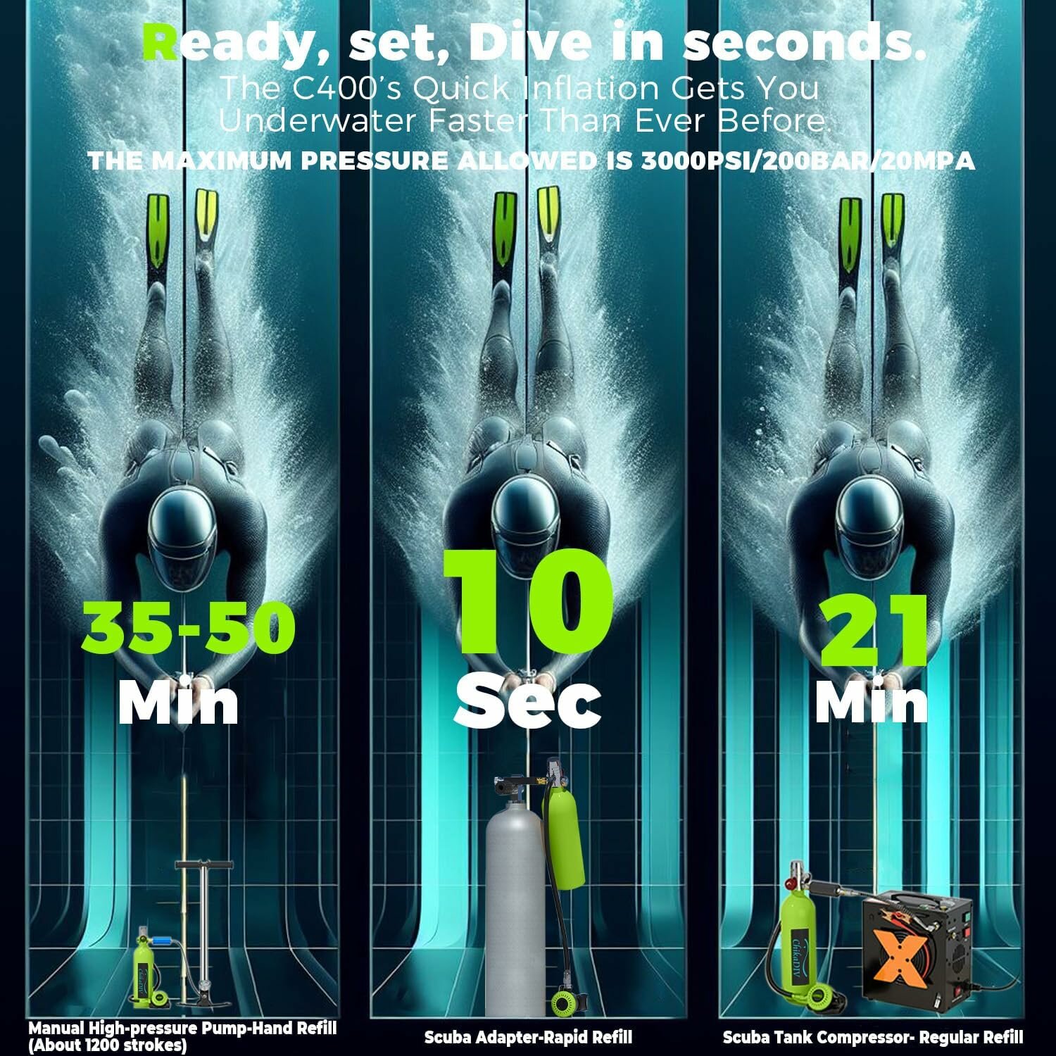 Купить ChikaDIV 1 л Баллон для дайвинга С насосом высокого давления