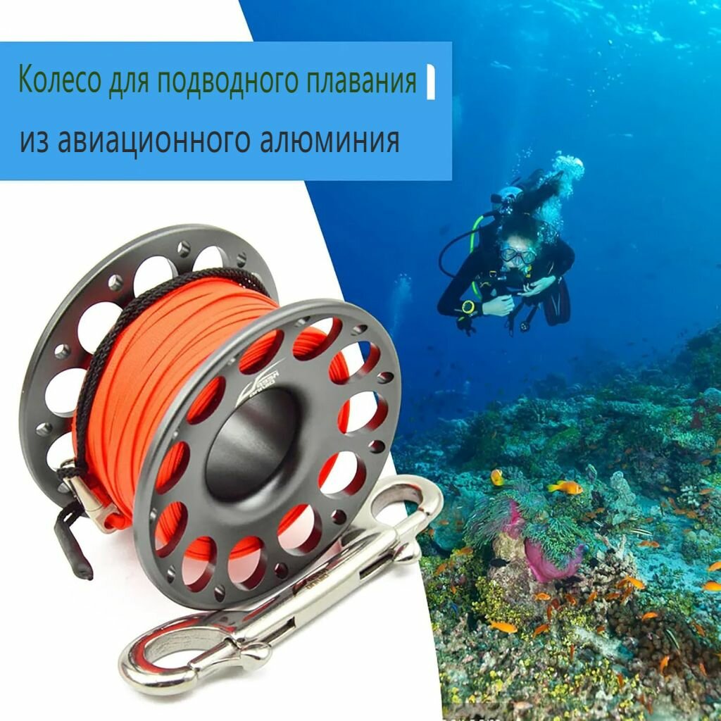 Катушка для дайвинга из авиационного алюминия длиной 30 м, устройство для освобождения троса буя для подводного плавания с аквалангом интересное: