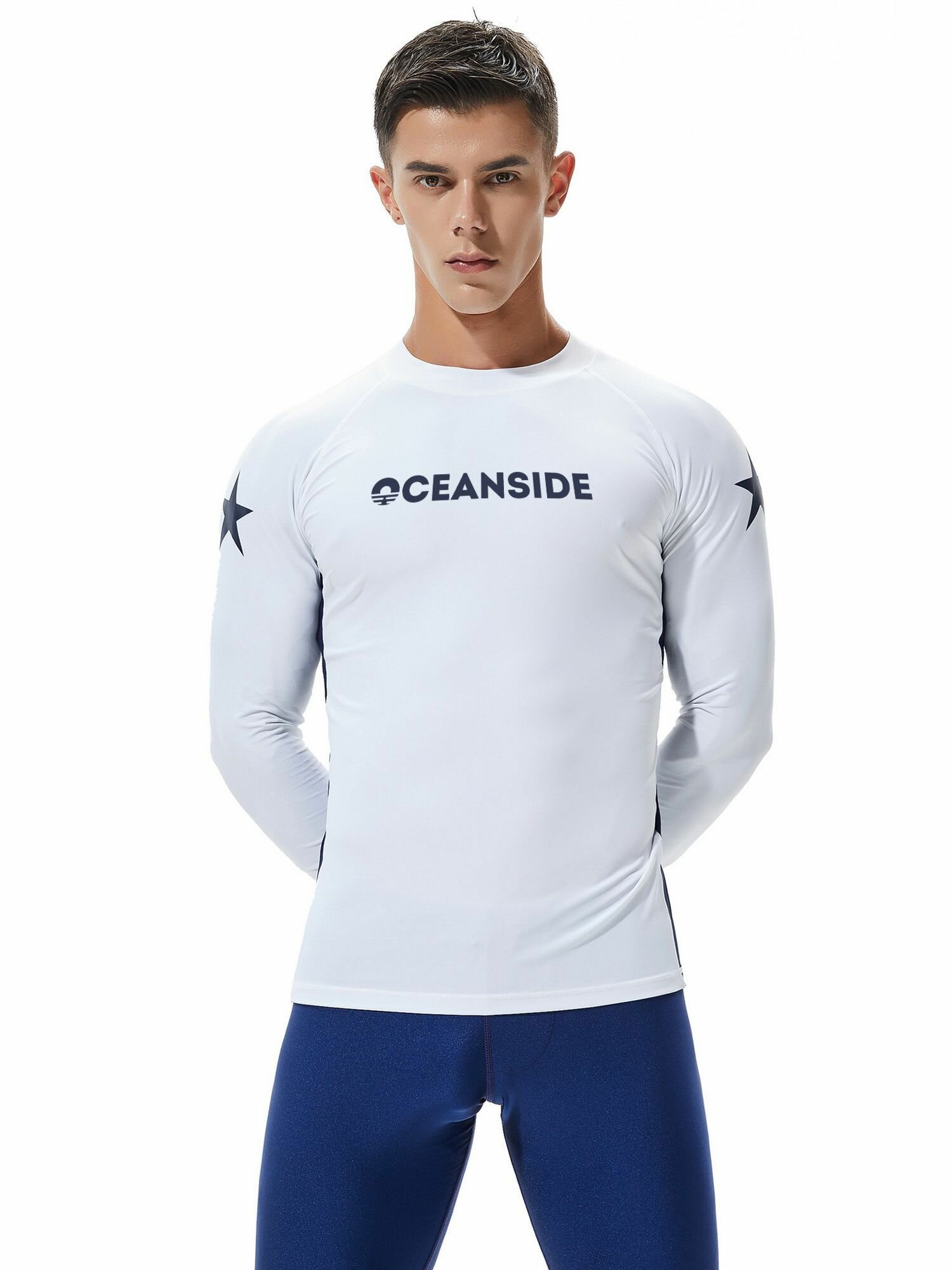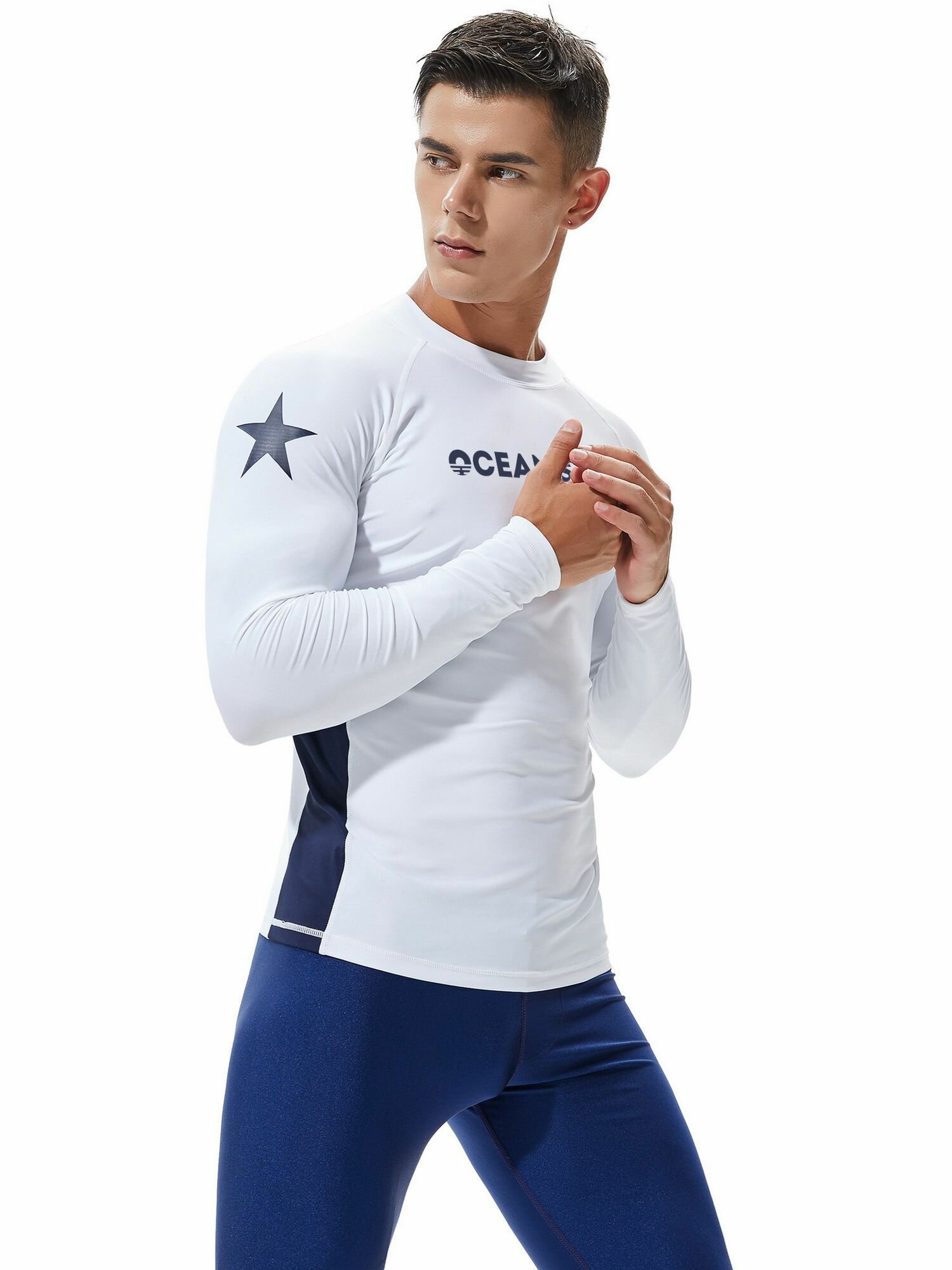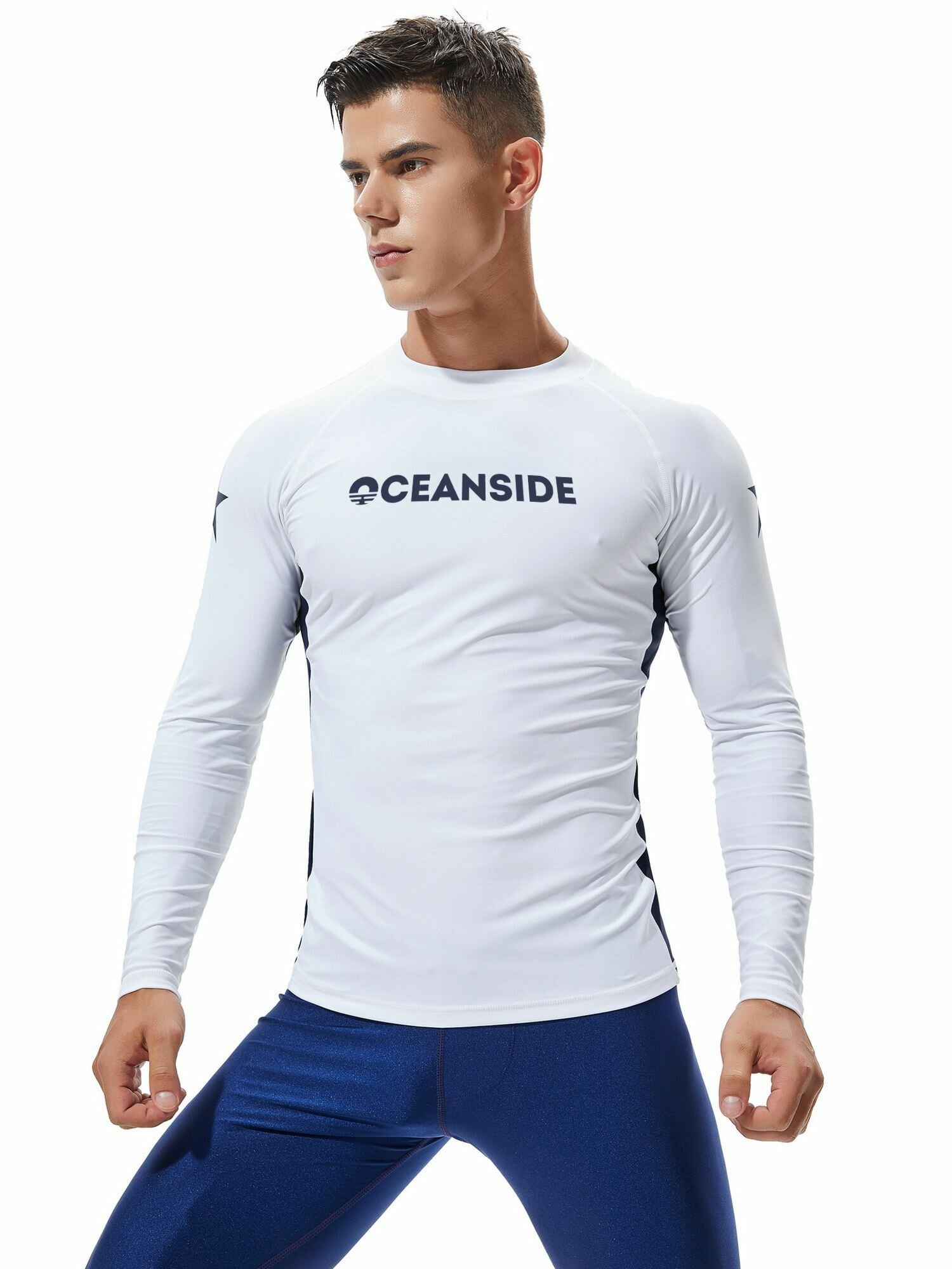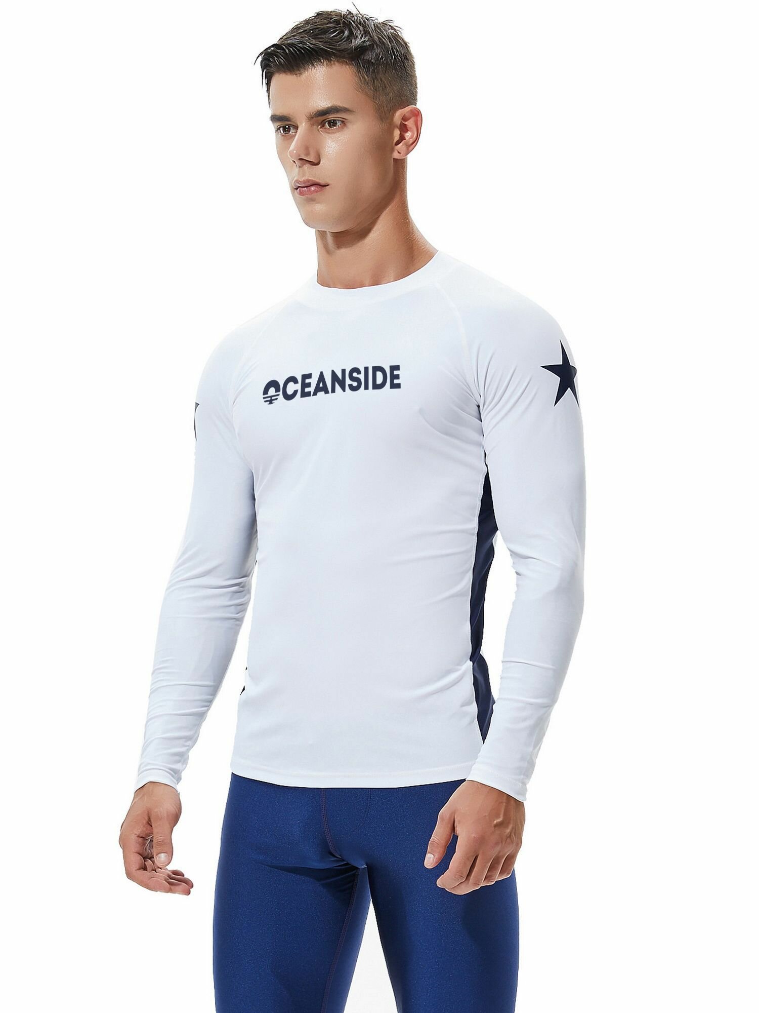 Гидромайка мужская футболка для плавания пляжная майка Белая/Темно-синяя интересное: