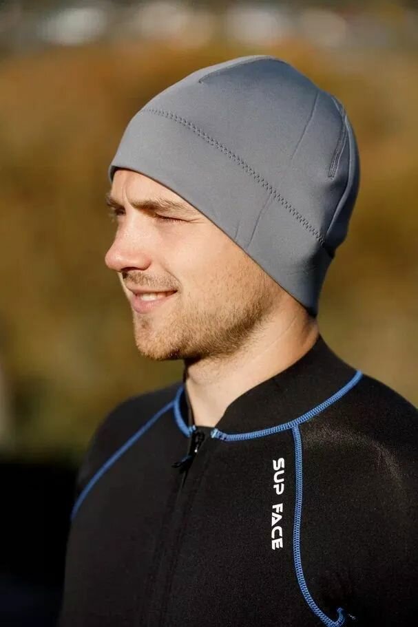 Шапка неопреновая SUP face серая р-р L/XL / Одежда для любителей сап борда, водного спорта