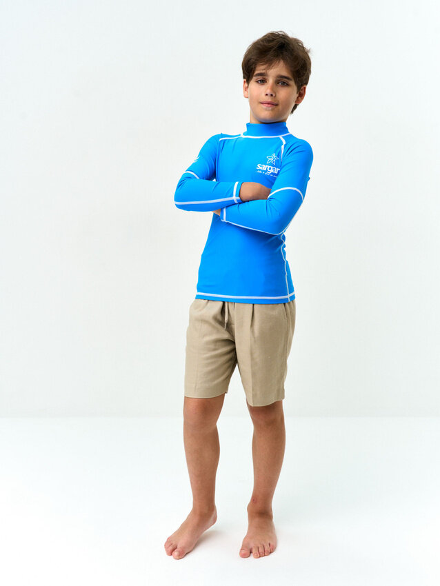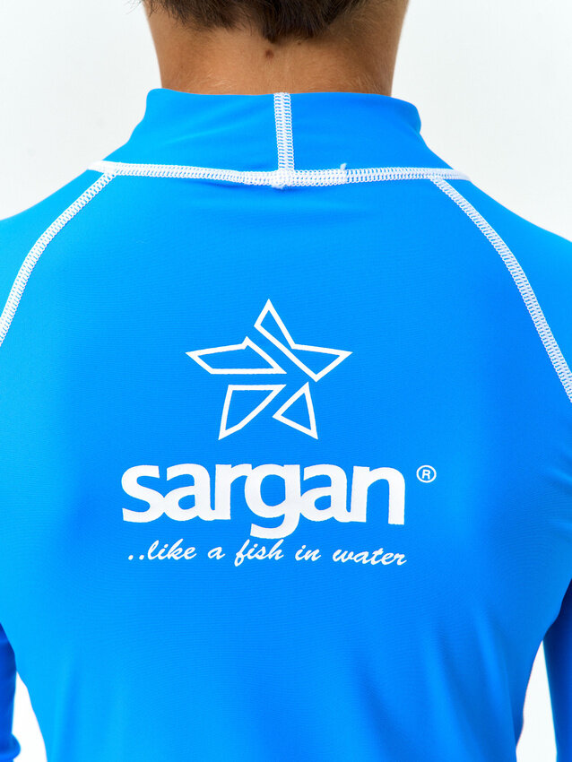 Футболка из лайкры детская с длинным рукавом лонгслив для водного спорта SARGAN агидель (8-9лет) аквамарин