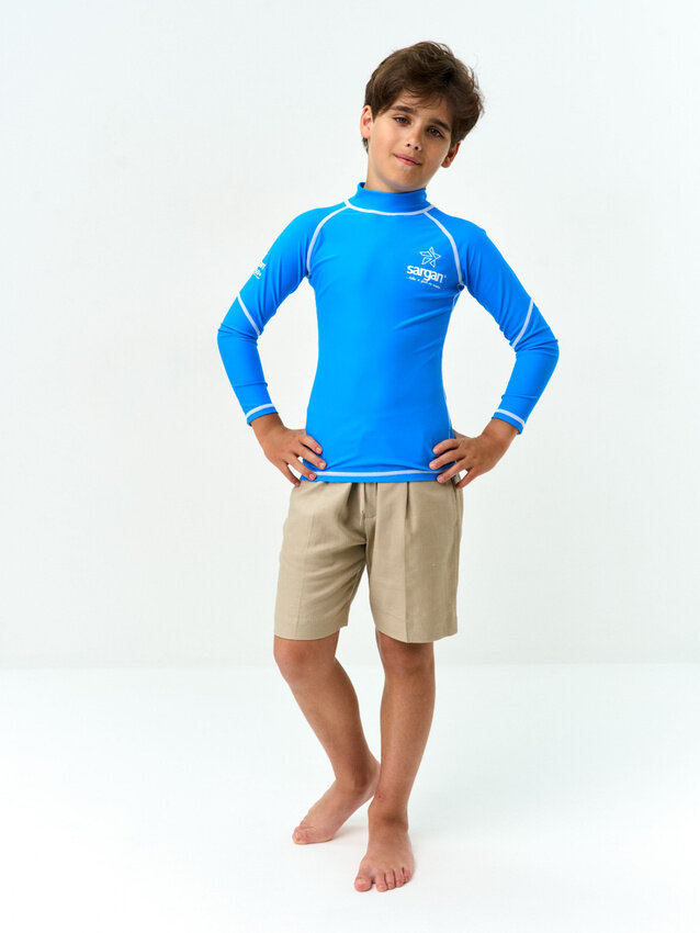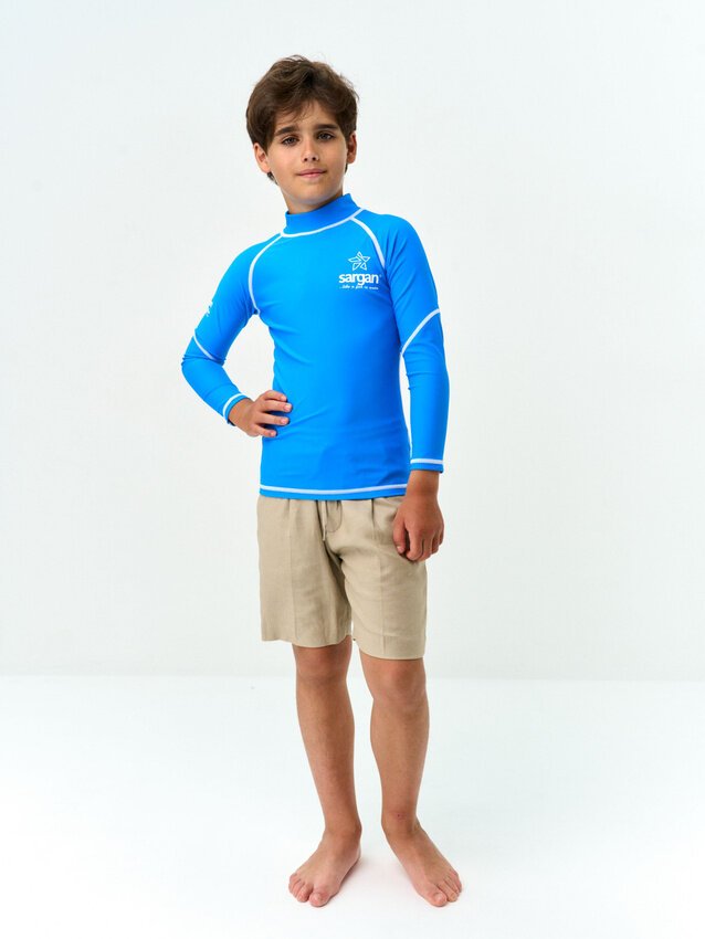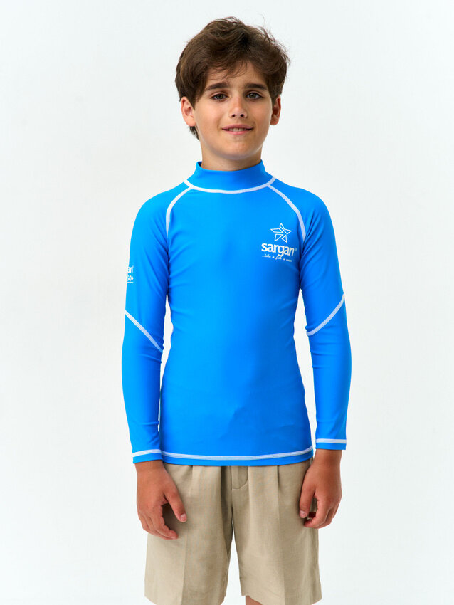 Футболка из лайкры детская с длинным рукавом лонгслив для водного спорта SARGAN агидель (8-9лет) аквамарин