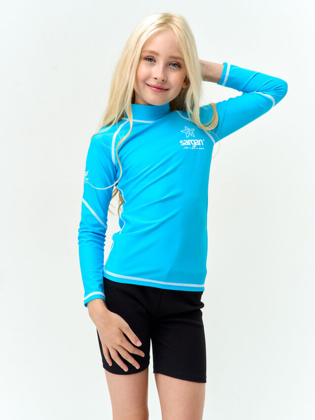 Футболка из лайкры детская с длинным рукавом лонгслив для водного спорта SARGAN агидель (8-9лет) аквамарин