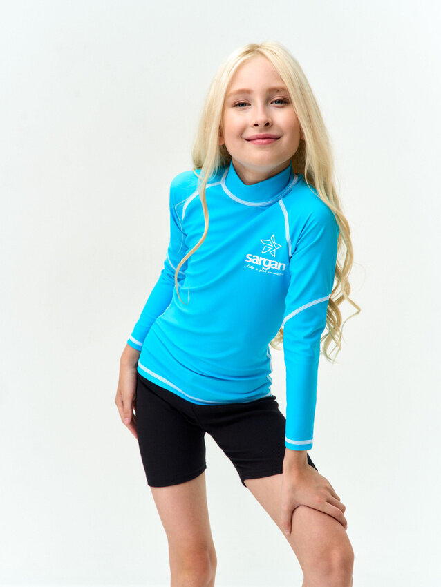 Футболка из лайкры детская с длинным рукавом лонгслив для водного спорта SARGAN агидель (6-7 лет) аквамарин