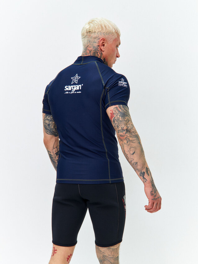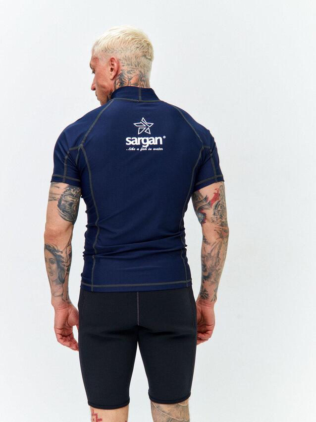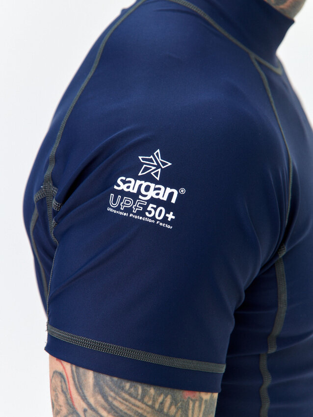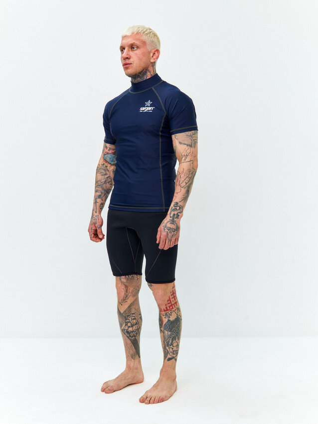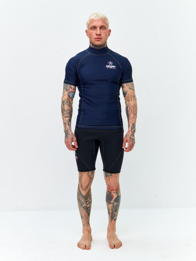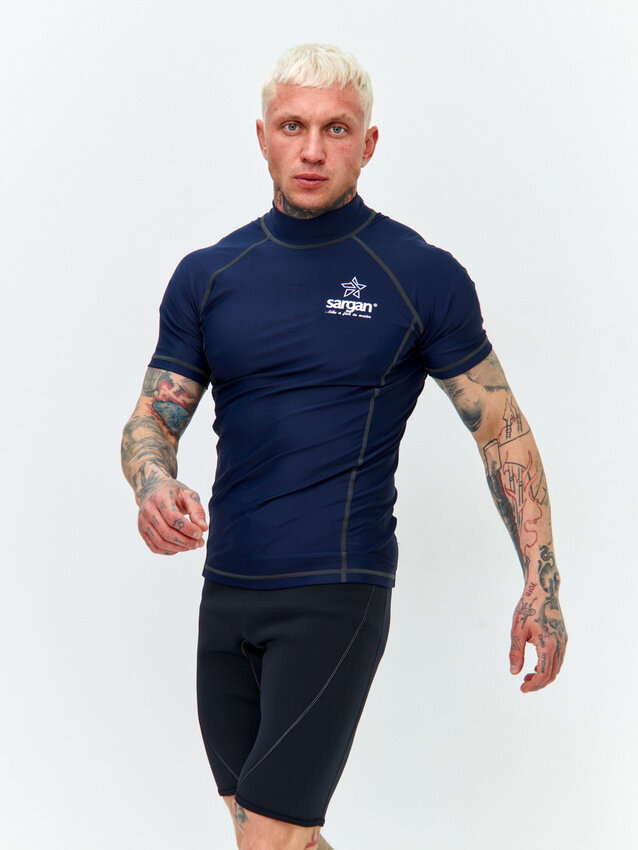 СохранитьФутболка из лайкры мужская с коротким рукавом для водного спорта пляжа и подводного плавания SARGAN агидель синий размер XXL интересное: