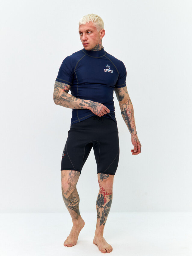 Футболка из лайкры мужская с коротким рукавом для водного спорта пляжа и подводного плавания SARGAN агидель синий размер S