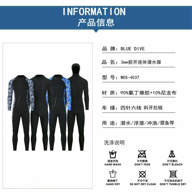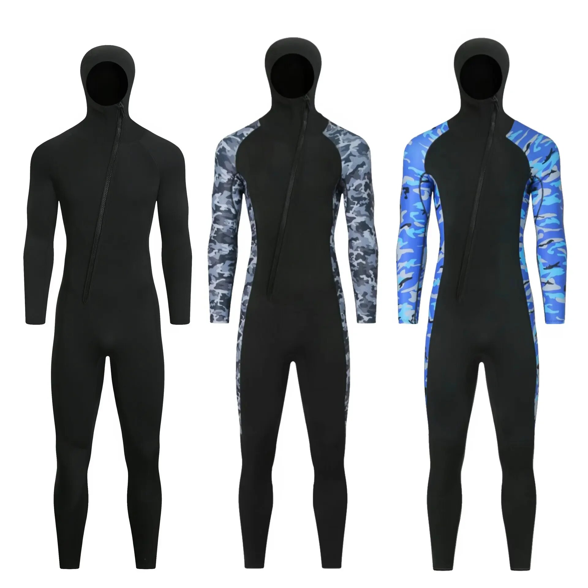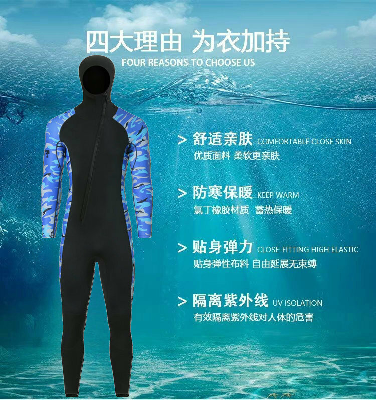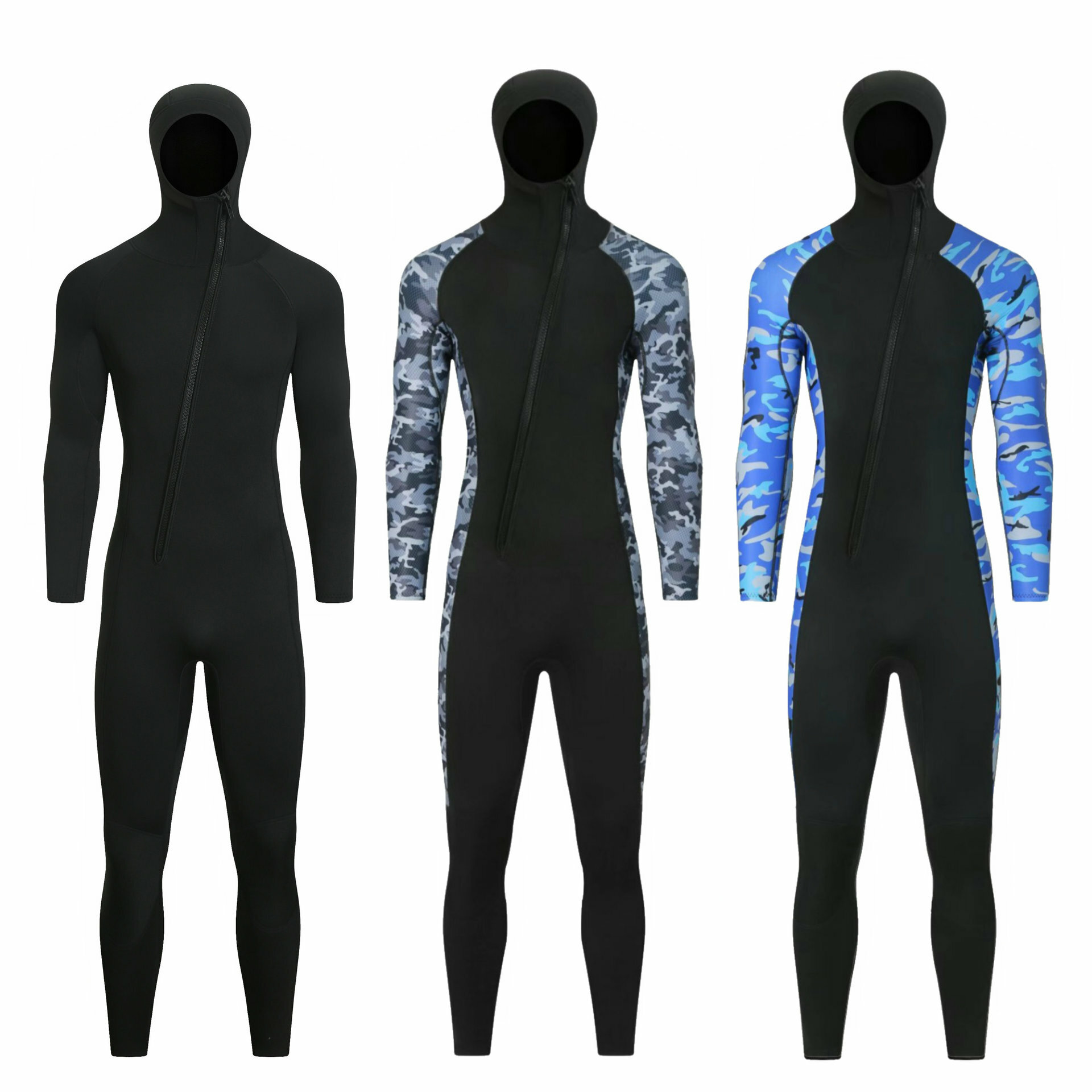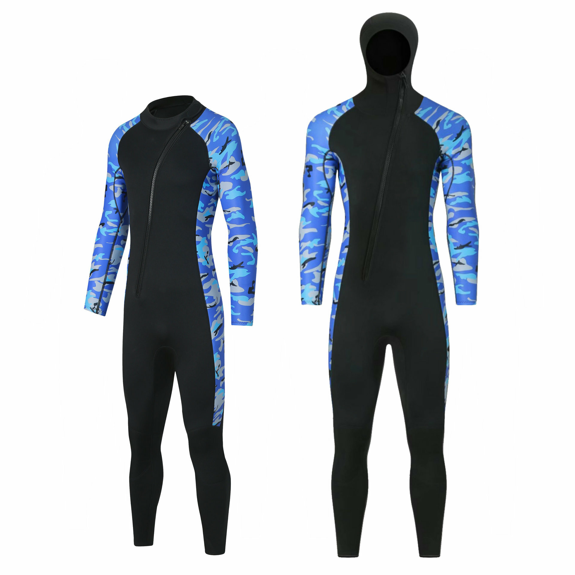 Гидрокостюм, мужской, 3мм, с капюшоном, камуфляжный, синий