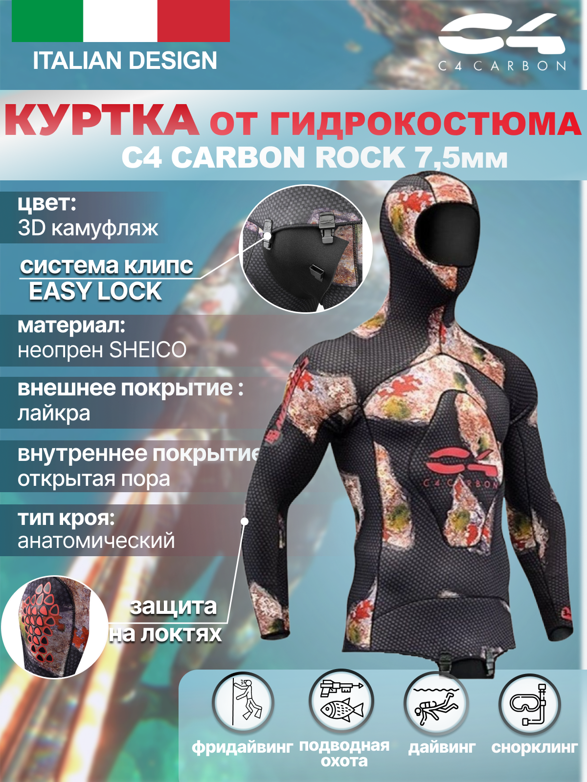 Купить Гидрокостюм C4 CARBON ROCK 7.5 мм, только куртка, р-р T5/XL