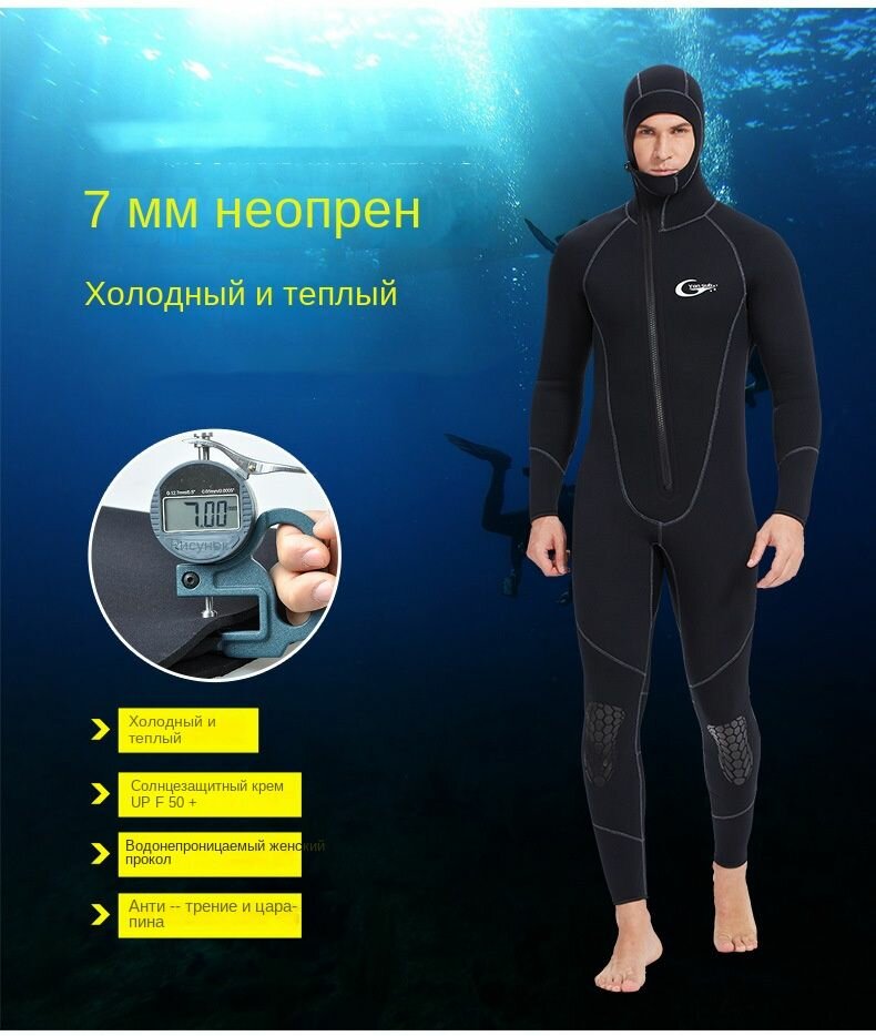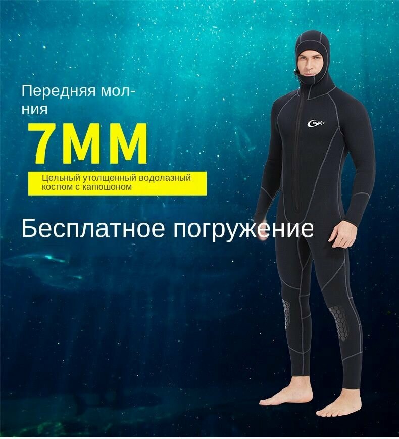 Костюм для подводного плавания мужской неопреновый костюм для подводного плавания/ охоты, серфинга, передняя молния 7MM интересное: