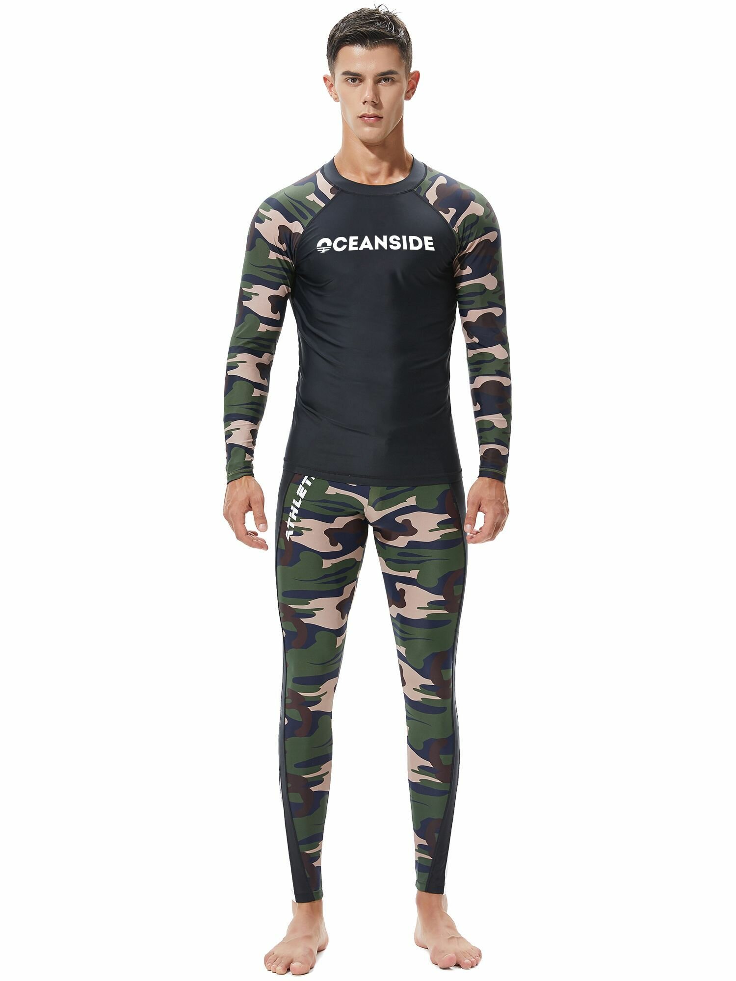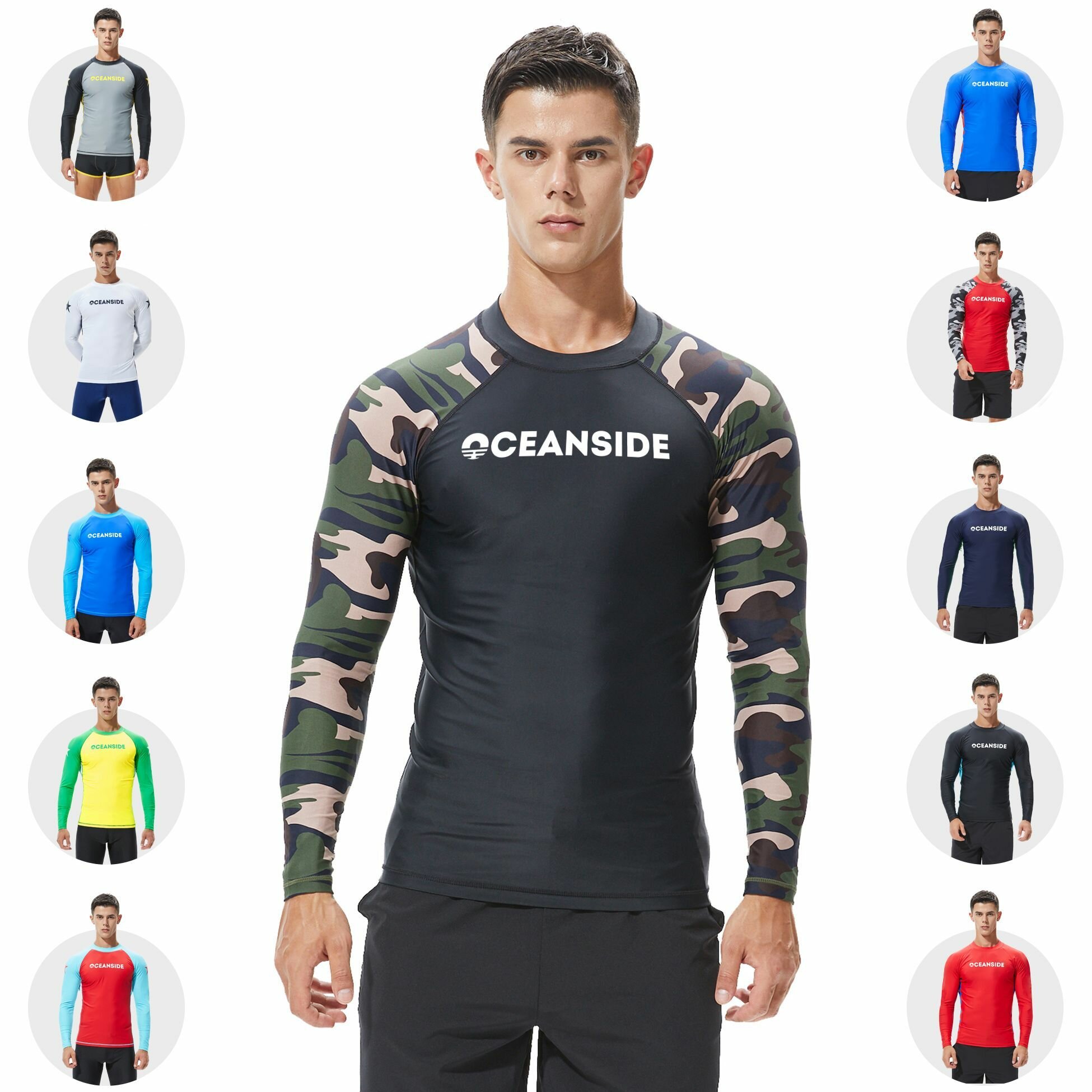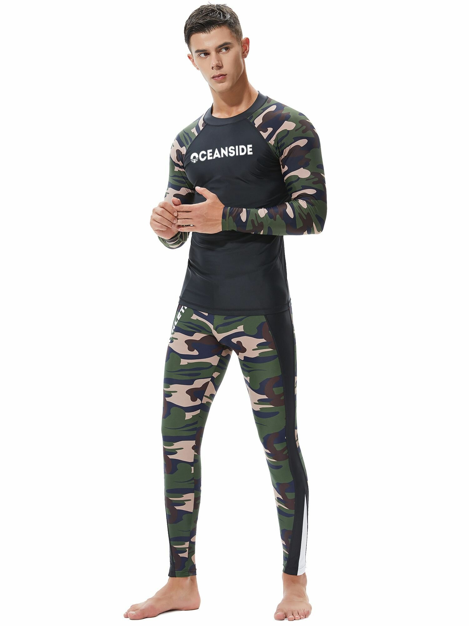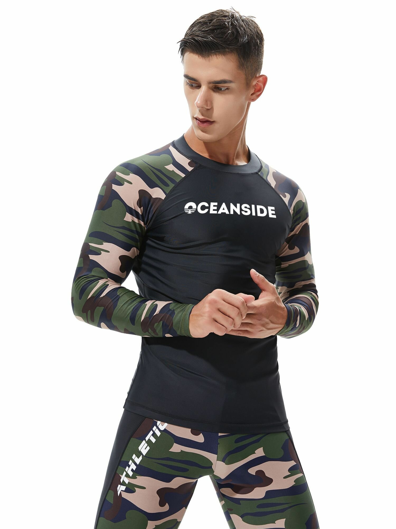 Купить Гидромайка мужская пляжная рашгард для плавания с рукавами Черная/Камуфляж
