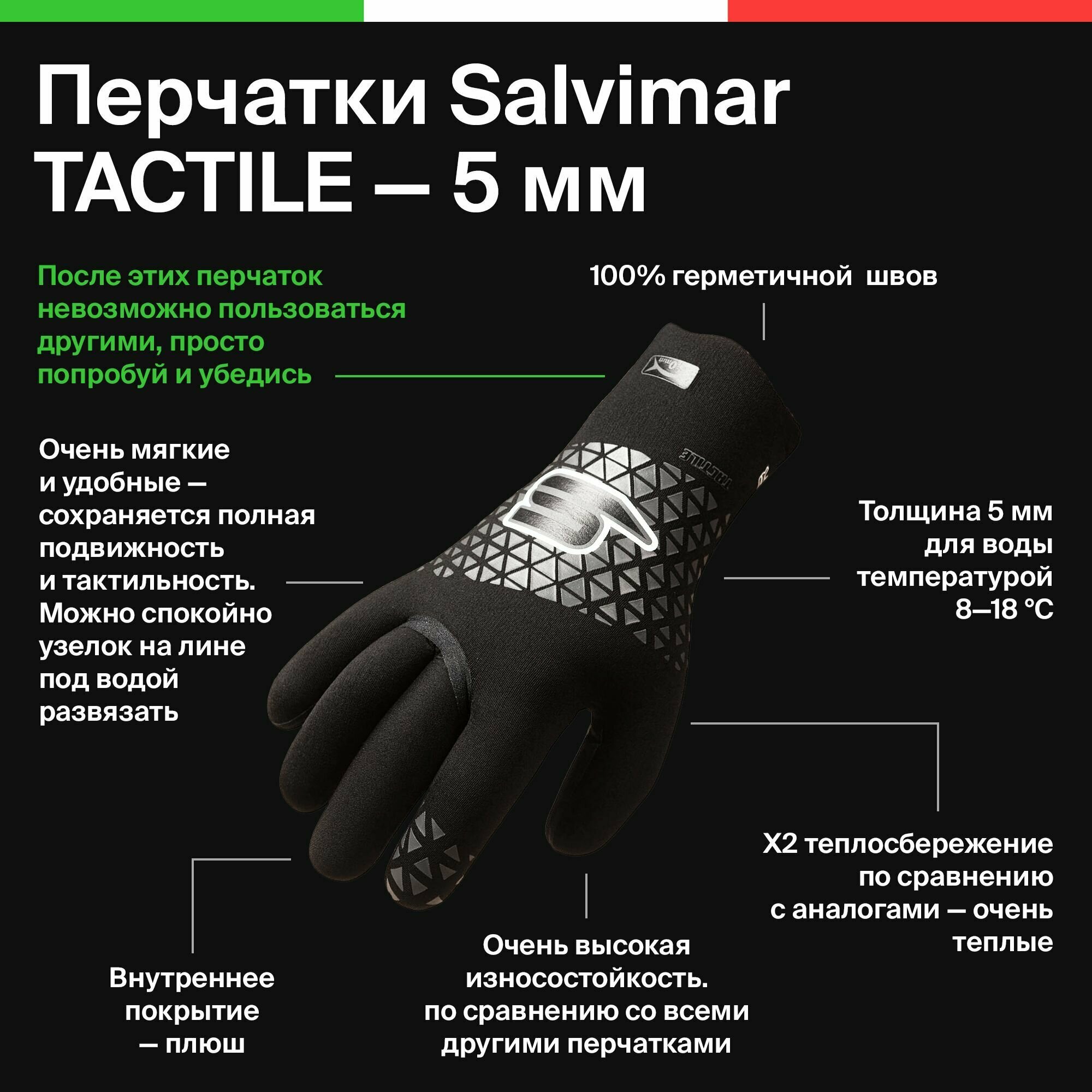 Перчатки неопреновые для подводной охоты и дайвинга Salvimar TACTILE, толщина 5 мм, S интересное: