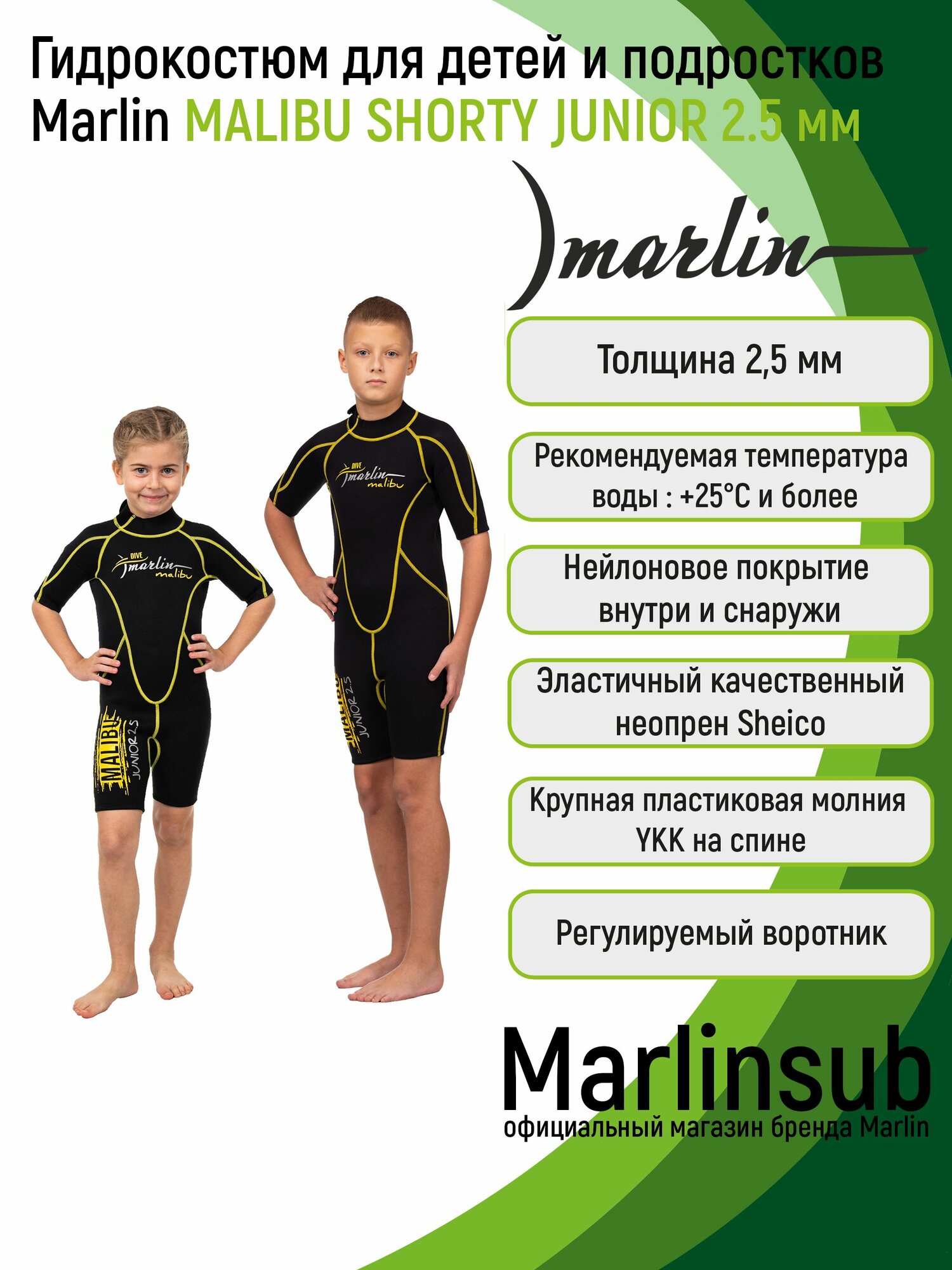 Купить Гидрокостюм детский Marlin MALIBU SHORTY JUNIOR 2,5 мм XL, черный/желтый
