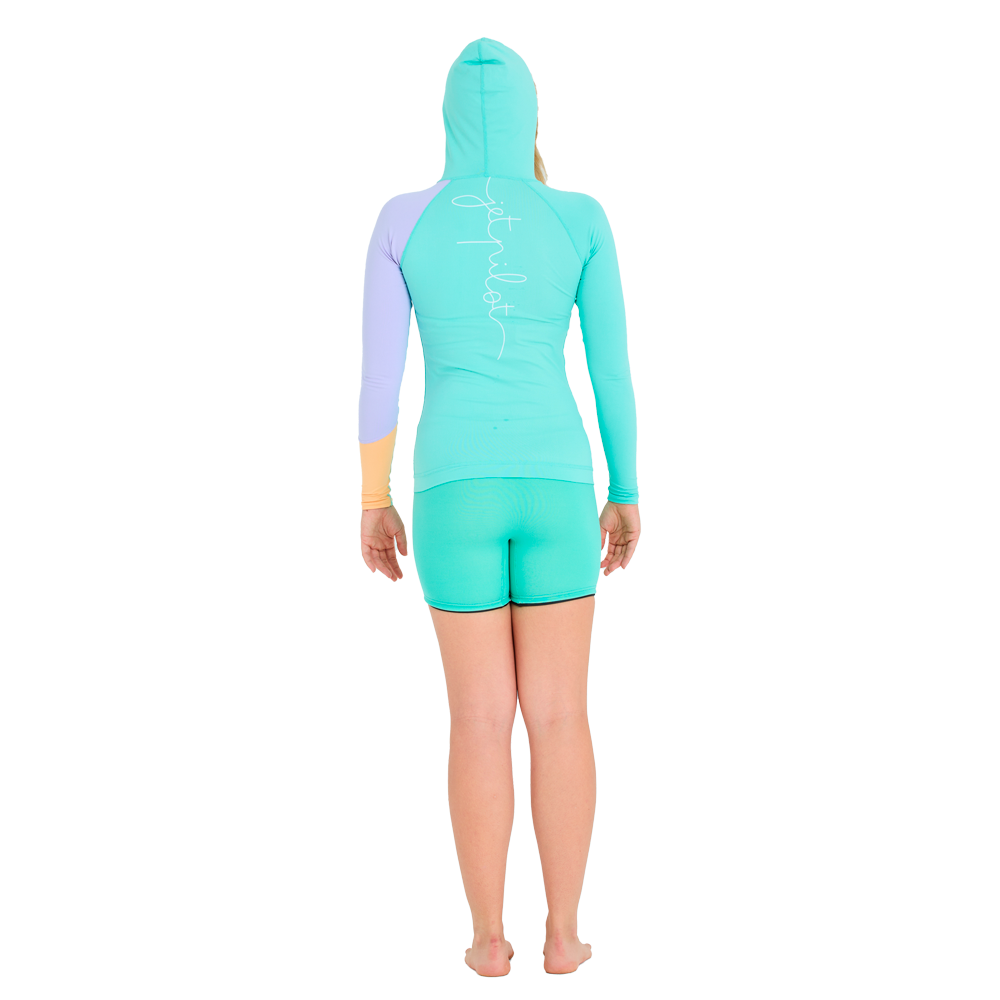 Купить Гидрокуртка JetPilot Pacer LS Hooded Rashie для женщин, размер L, цвет Teal, защита UPF 50+