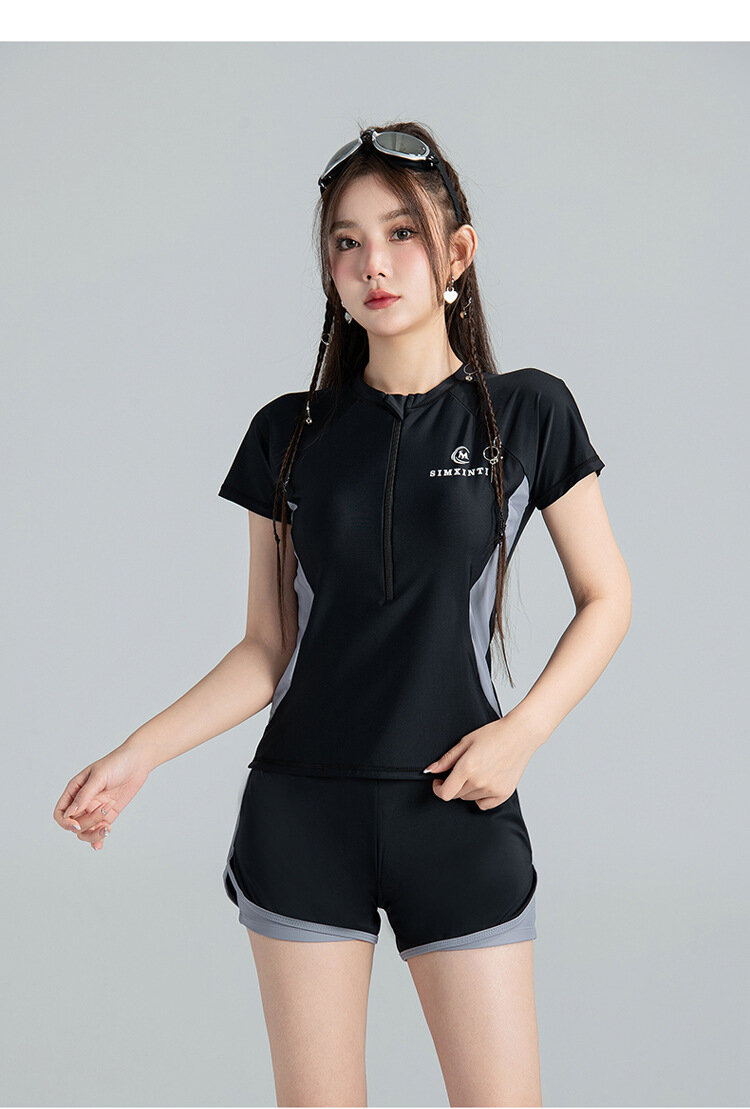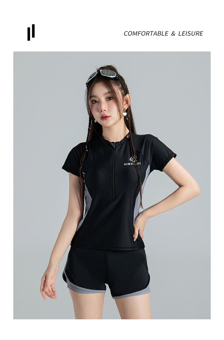 BSwemek Женский Рашгард Купальник Нейлон Полиэстер Спандекс, M, Черный интересное: