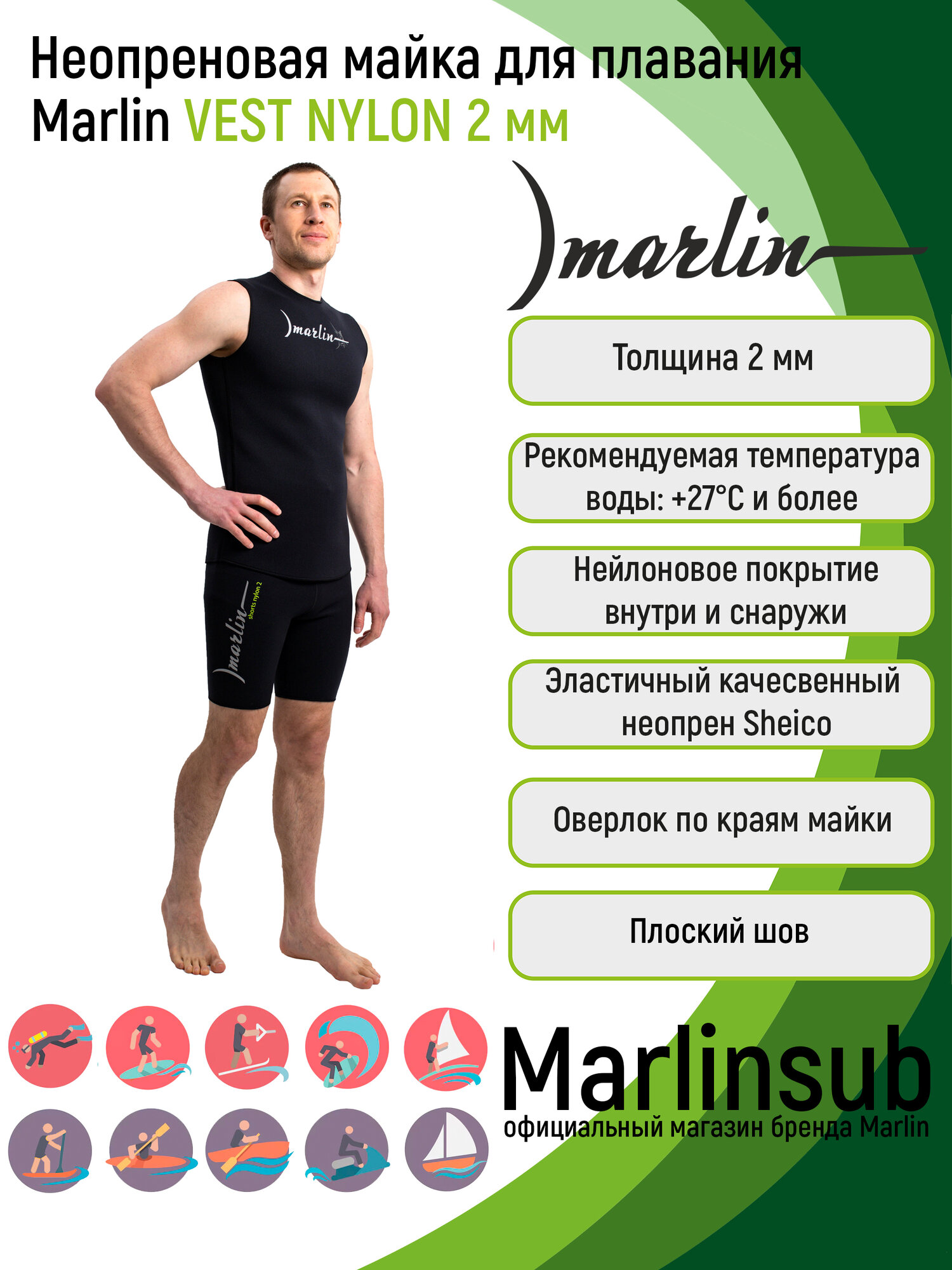 СохранитьМайка неопреновая для плавания и водных видов спорта Marlin VEST NYLON 2 мм XXL, черный интересное: