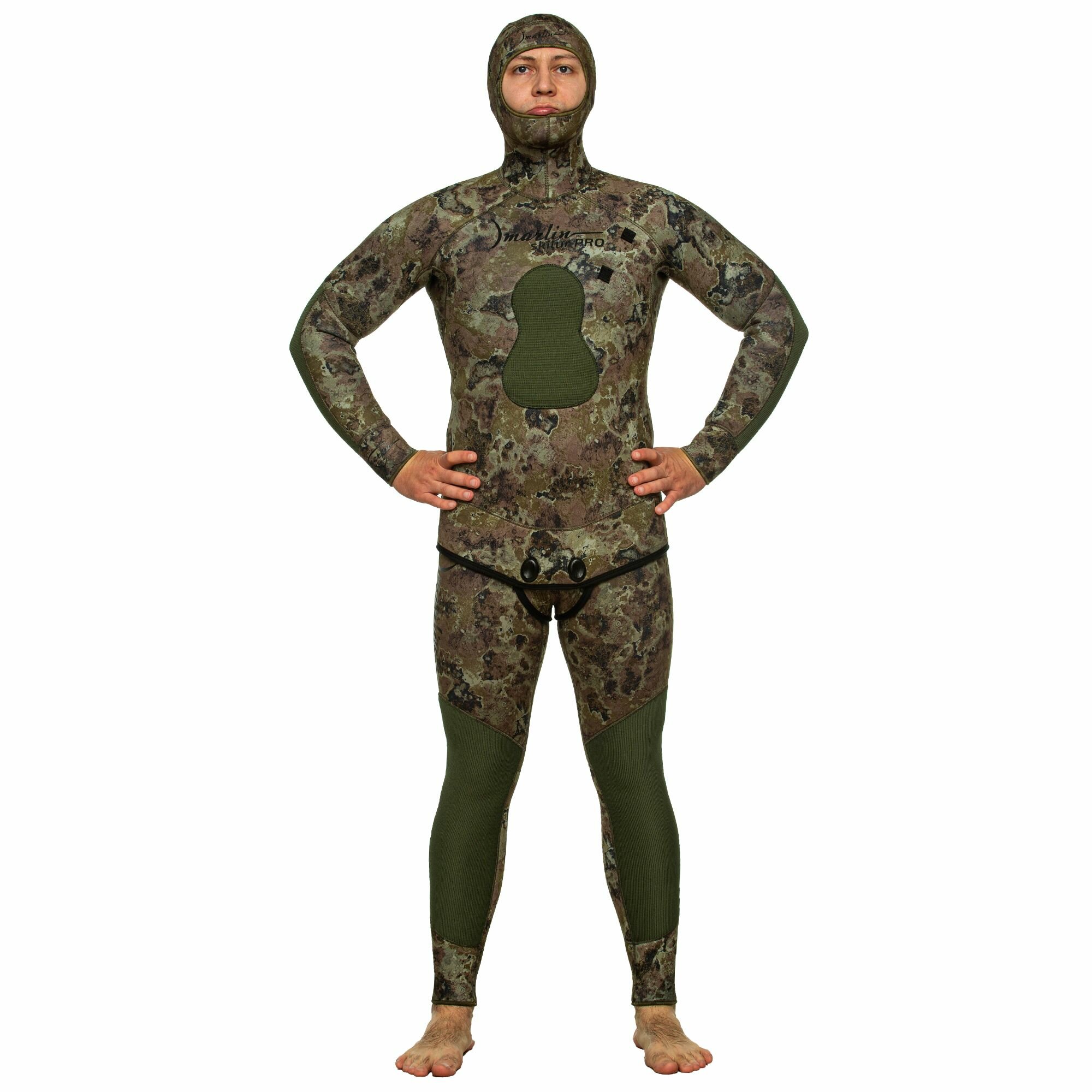 Гидрокостюм для подводной охоты Marlin SKILUR PRO 5 мм 46, зеленый камуфляж
