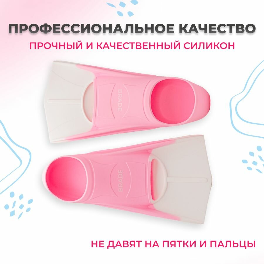 Ласты для плавания детские короткие BRADE розовый (размер XS 33-35) интересное: