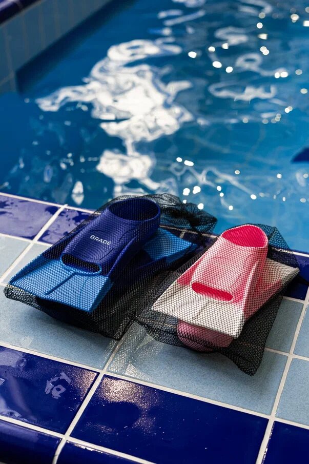 Ласты для плавания тренировочные для бассейна короткие BRADE синий (размер S 36-38) интересное: