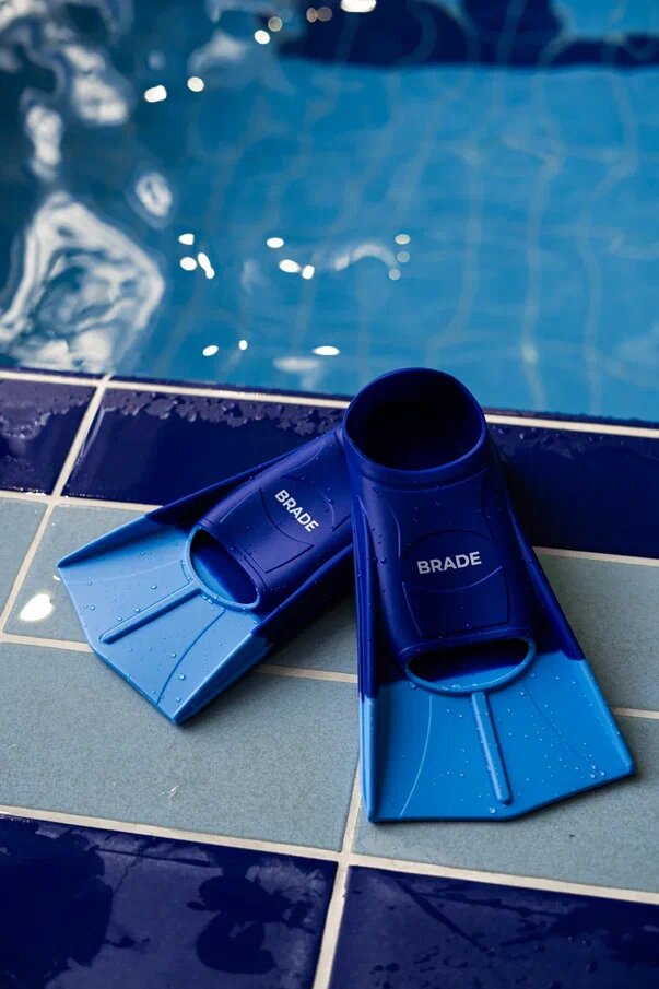 Ласты для плавания тренировочные для бассейна короткие BRADE синий (размер S 36-38)